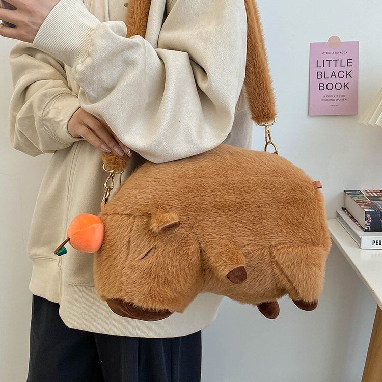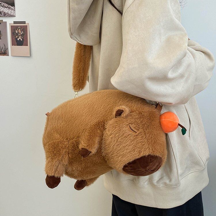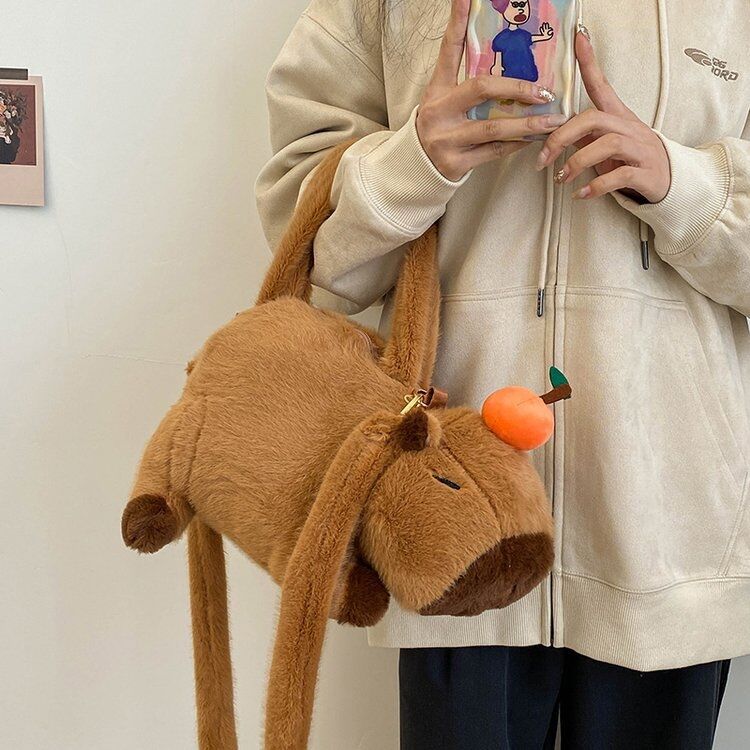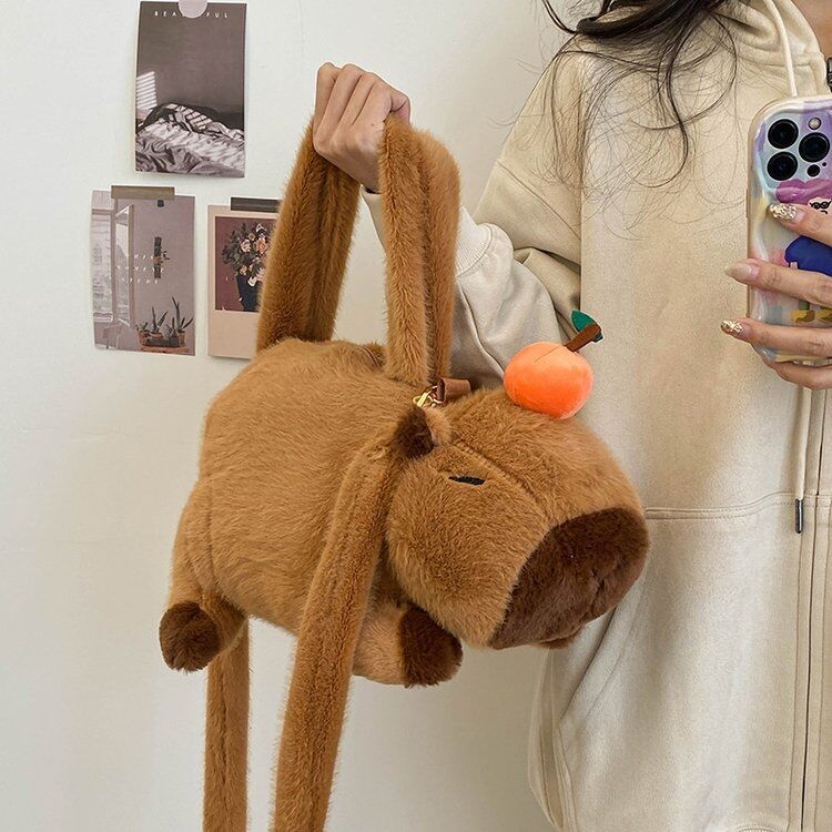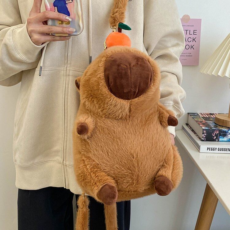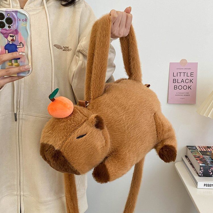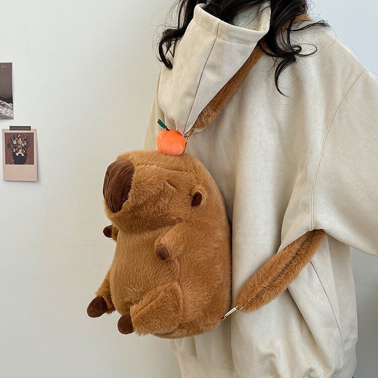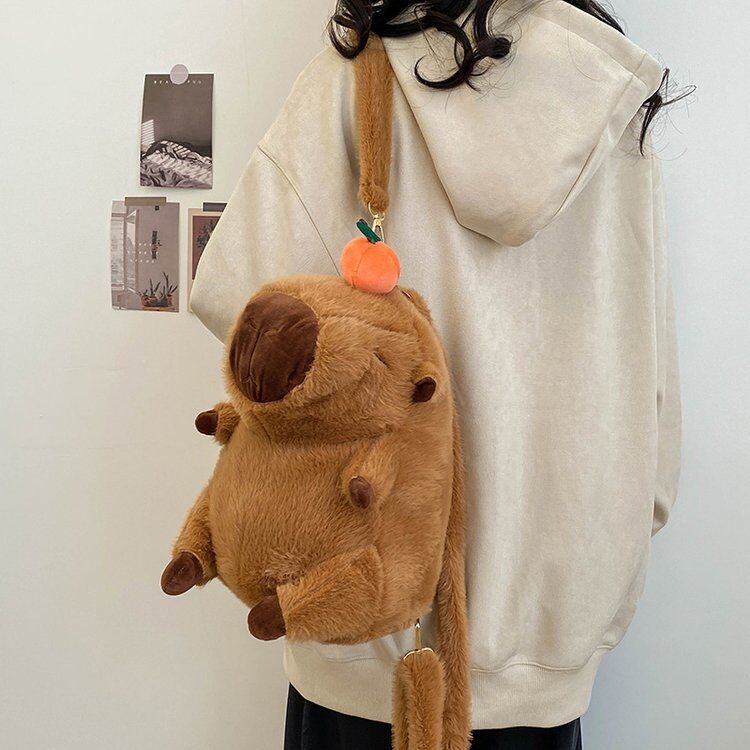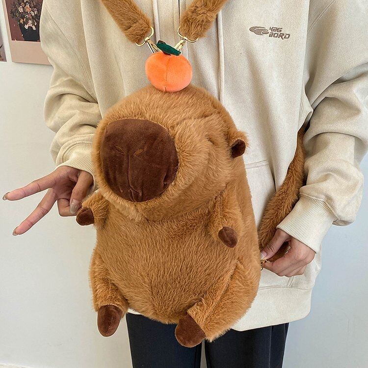 顶桔子趣味卡皮巴拉毛绒玩具包可爱卡通丑萌水豚双肩背包手提大包
