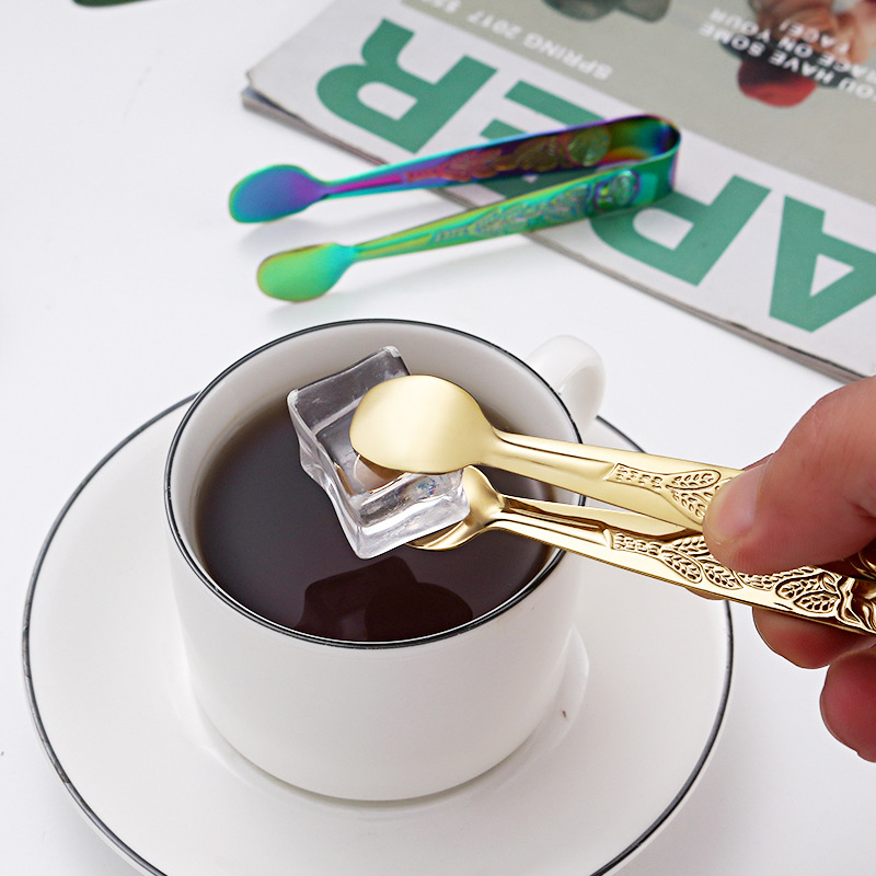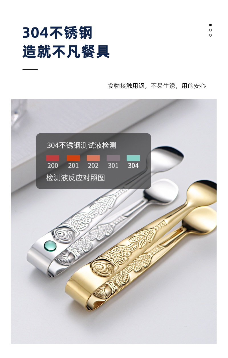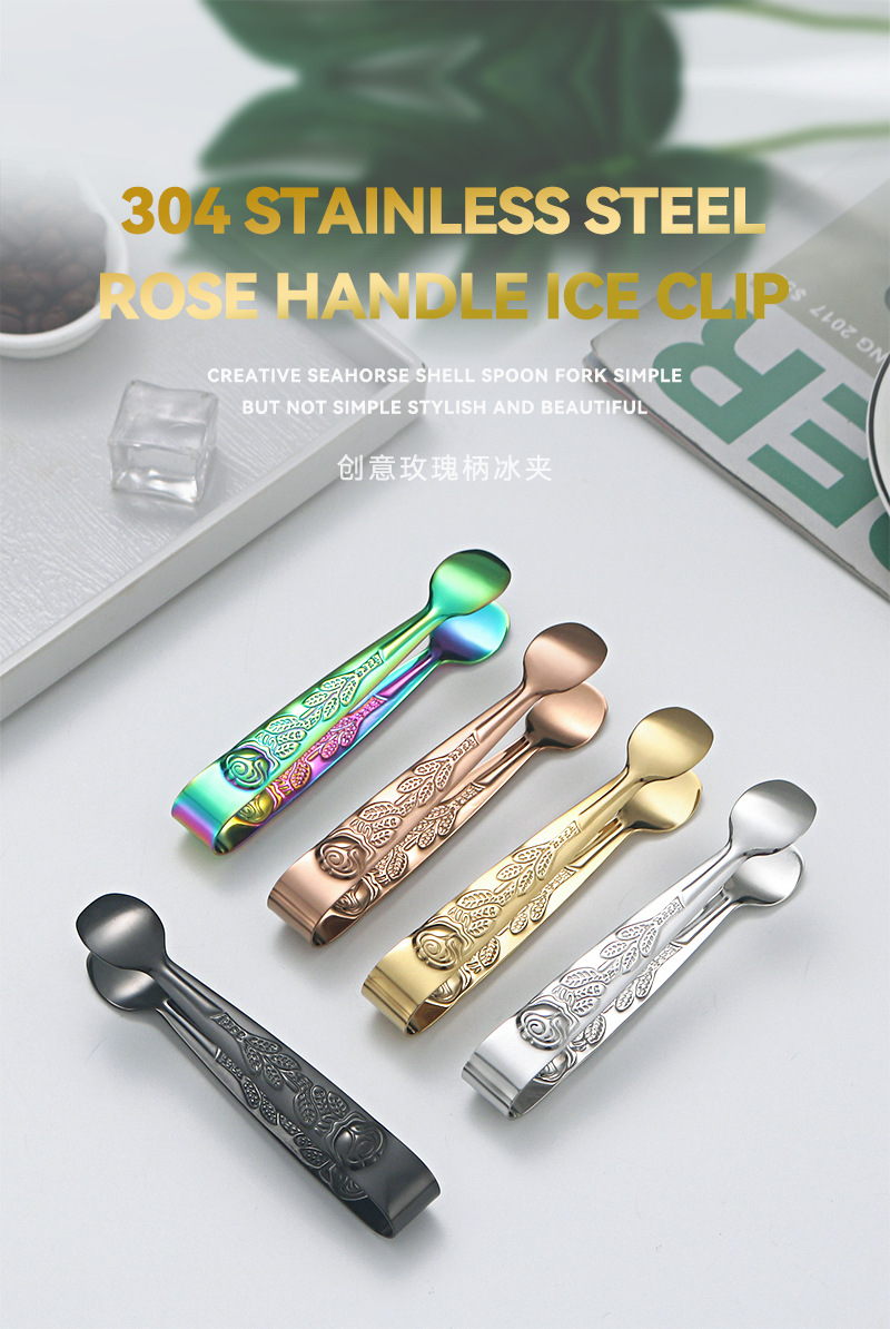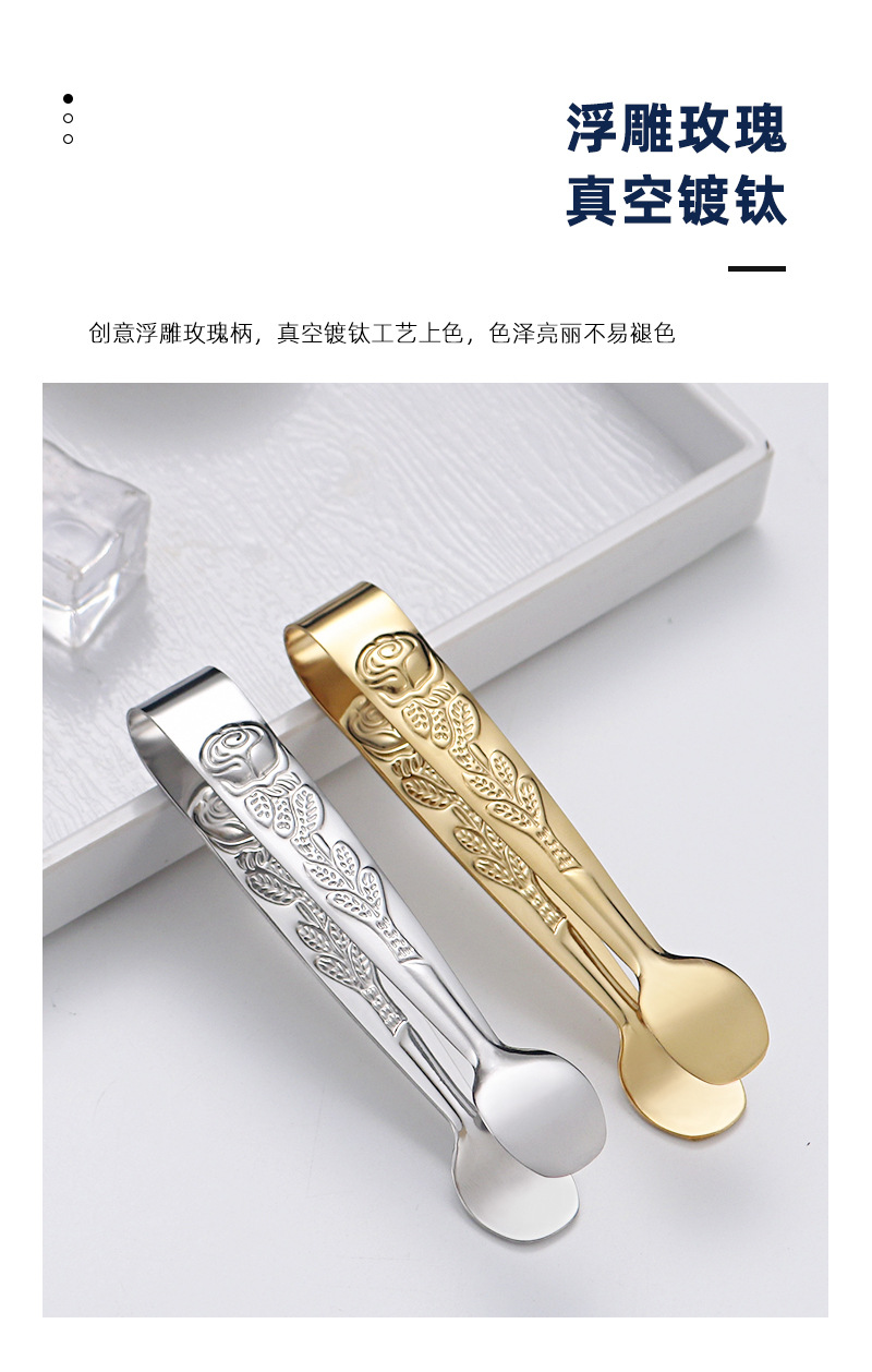 304不锈钢冰块夹创意玫瑰花纹方糖冰块小夹子蘸料夹冰桶迷你冰钳