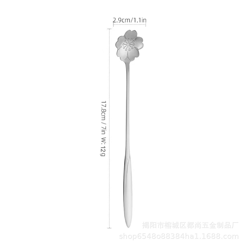 不锈钢樱花勺树叶勺日式花朵勺长柄搅拌咖啡勺甜品勺叉蜂蜜燕窝勺