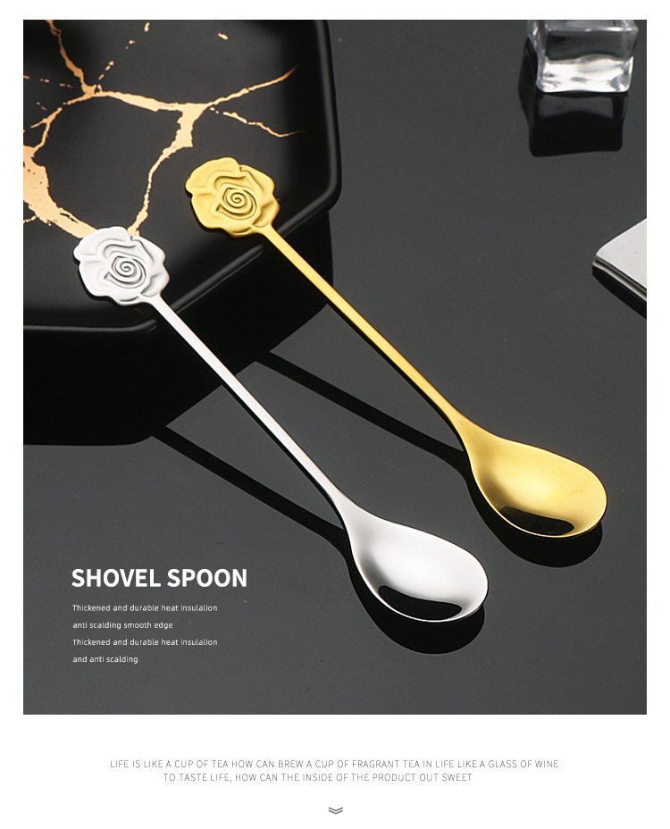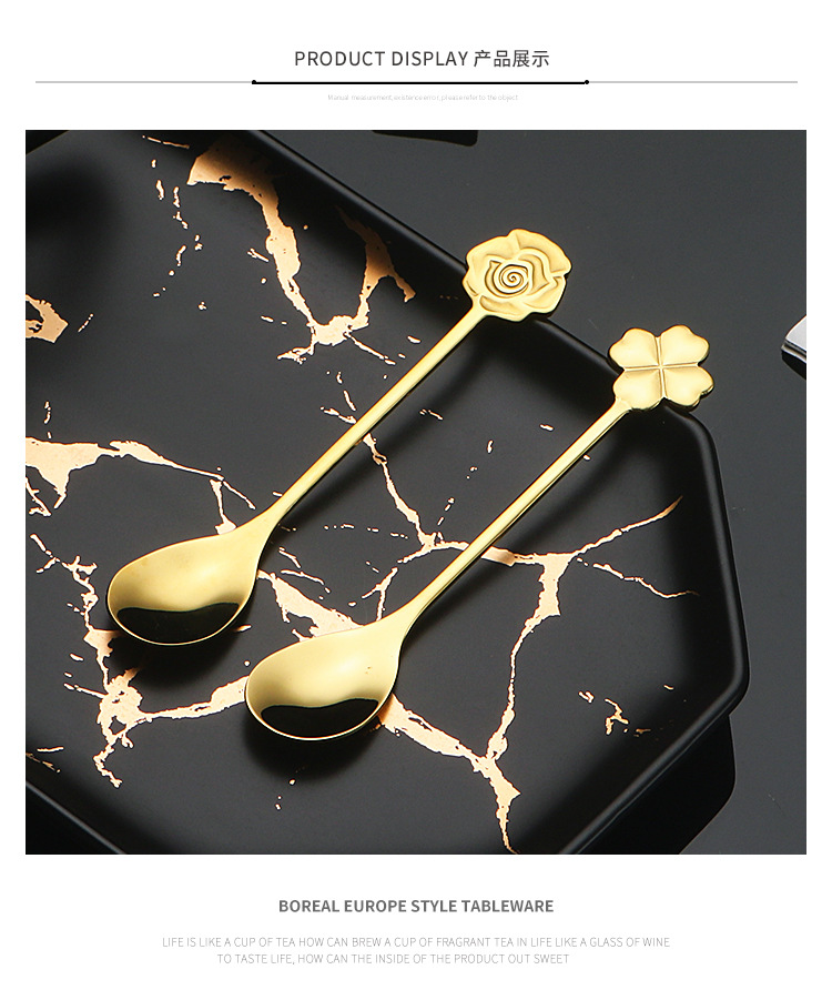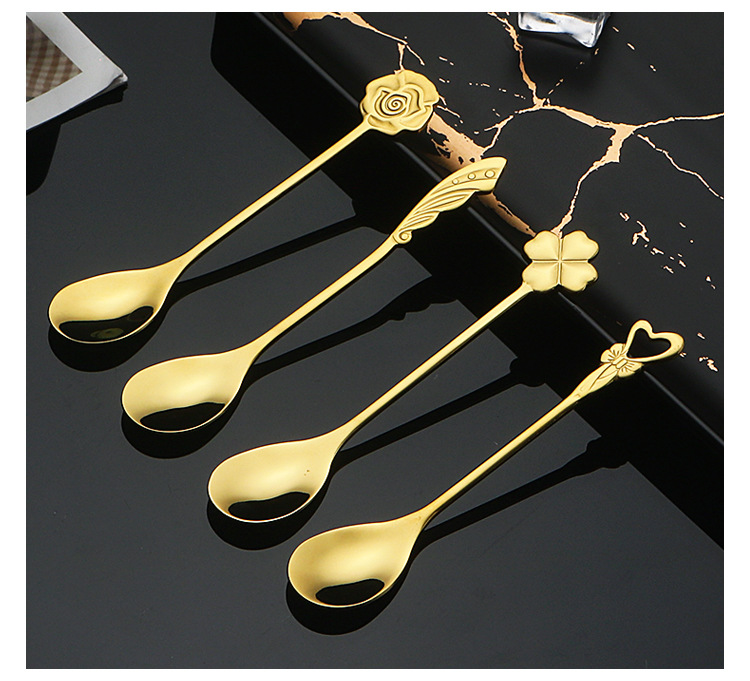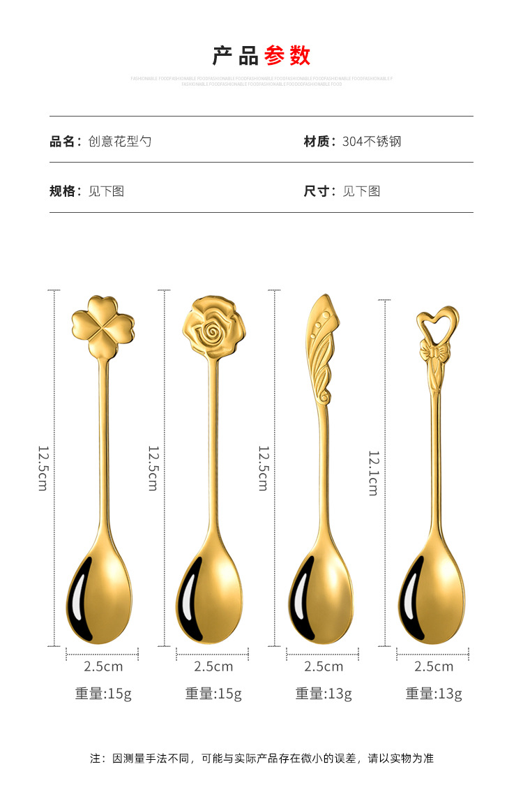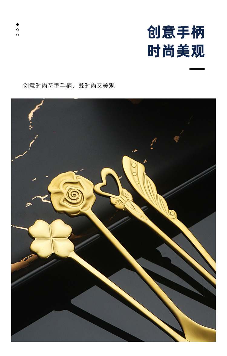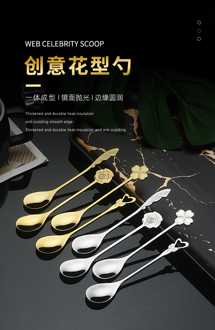 304不锈钢咖啡勺子创意可爱搅拌勺网红INS甜品雪糕蜂蜜勺金色餐勺
