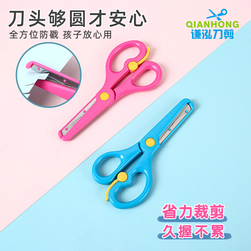 儿童安全剪刀剪纸带刀片剪刀幼儿防夹弹力塑料学生手工小剪刀
