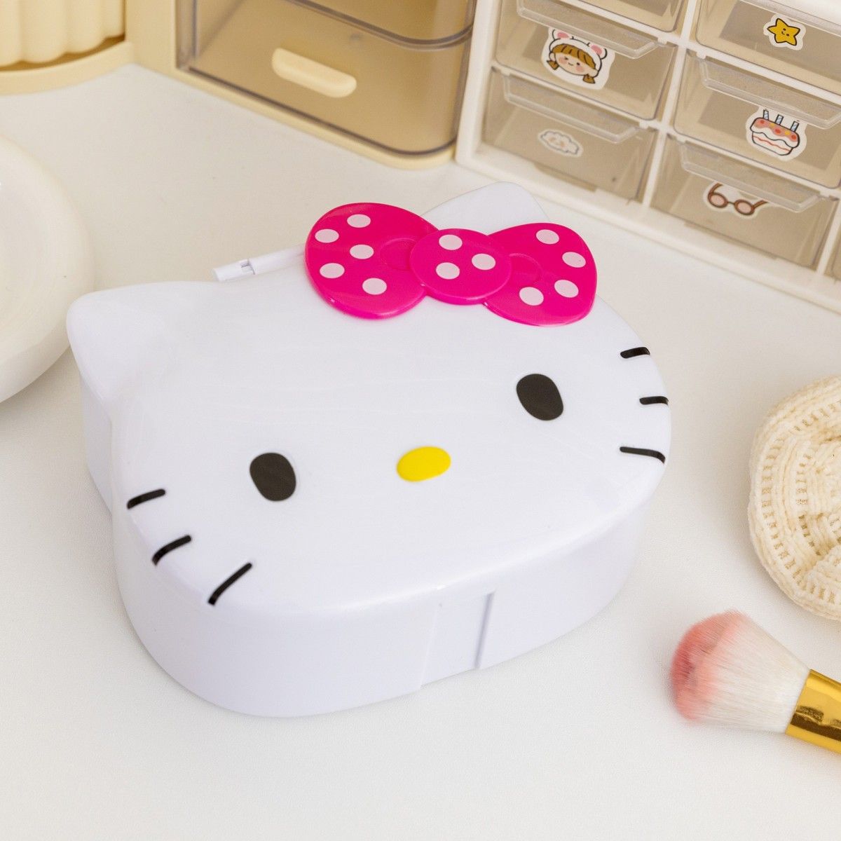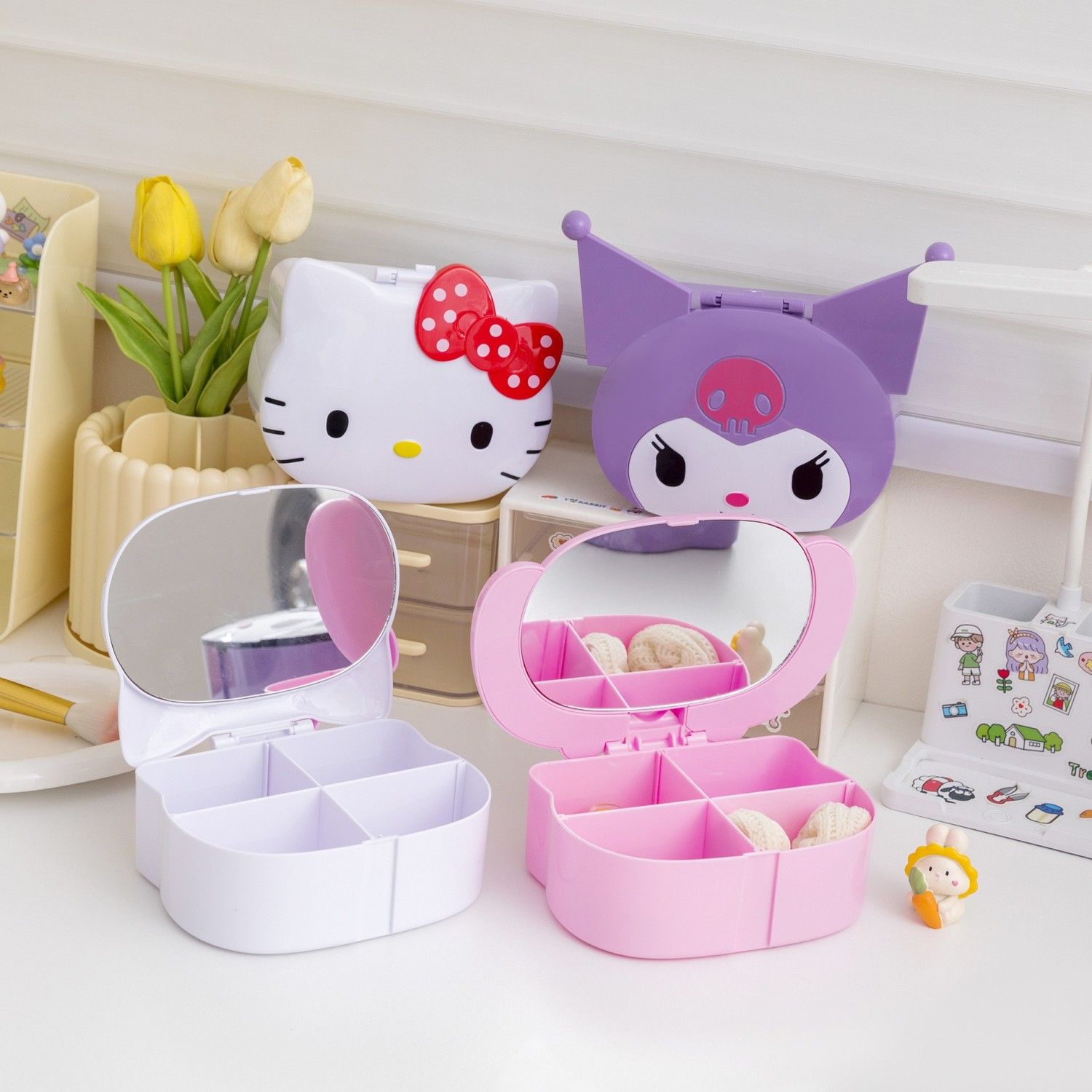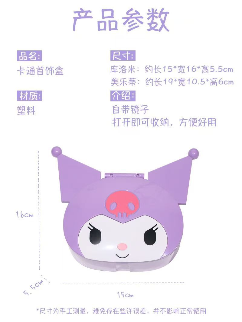 可爱分格卡通美乐蒂台镜多功能收纳盒库洛米首饰盒翻盖KT化妆镜子