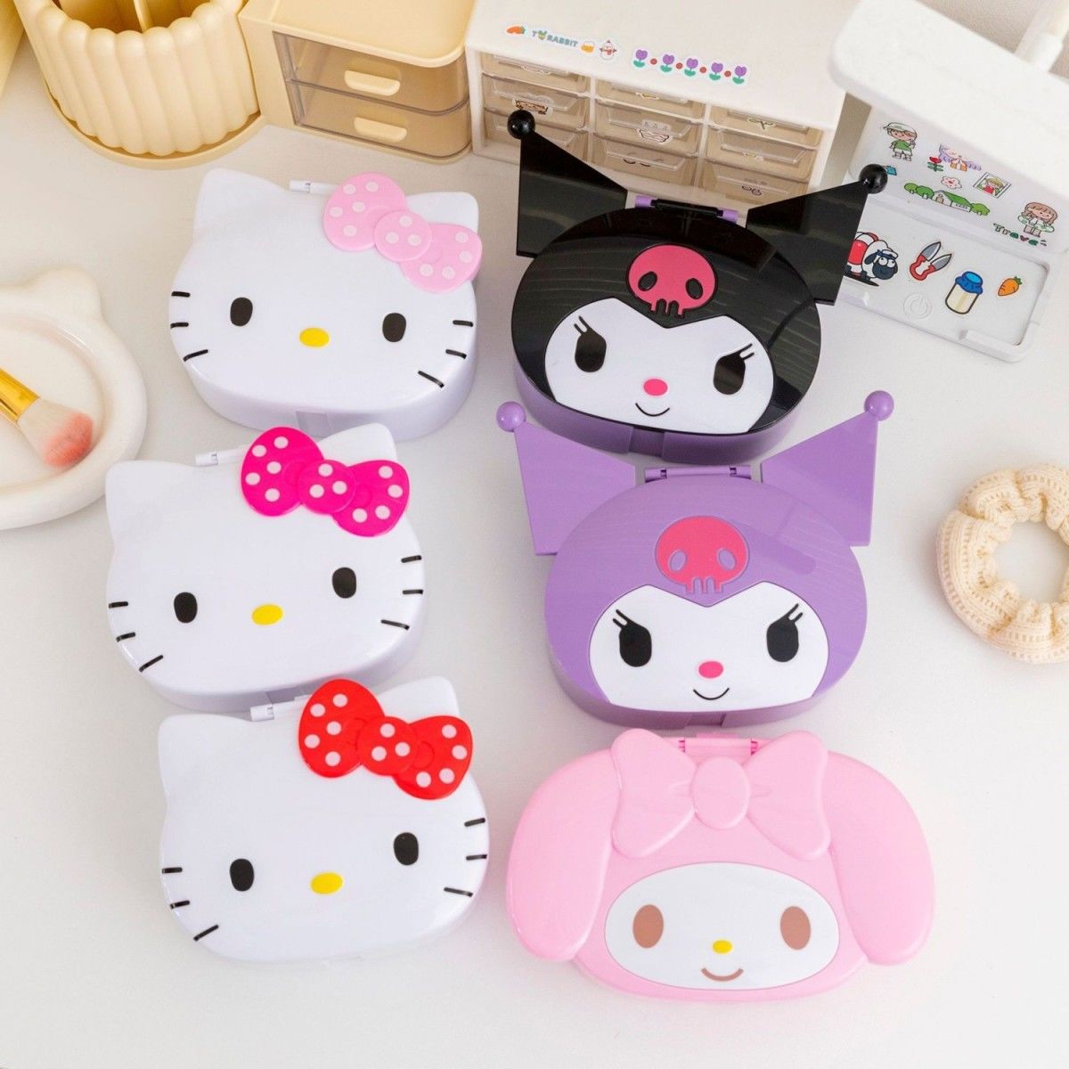 cute grid cartoon my melody mirror multi-functional storage box cute clow m jewelry box flip cosmetic mirror