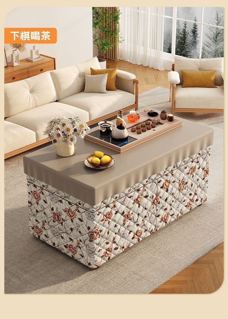 家用长方形烤火桌子全套可折叠多功能餐桌烤火架子防冷取暖一体桌