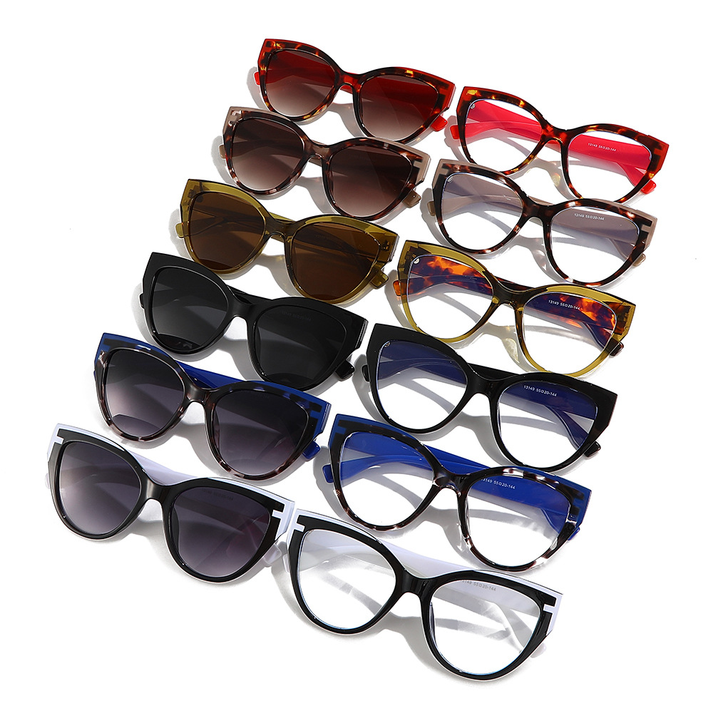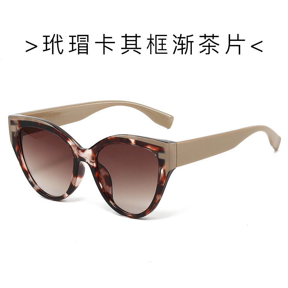 2024新款跨境撞色墨镜女 大脸显瘦猫眼时尚百搭太阳镜 防晒遮阳镜