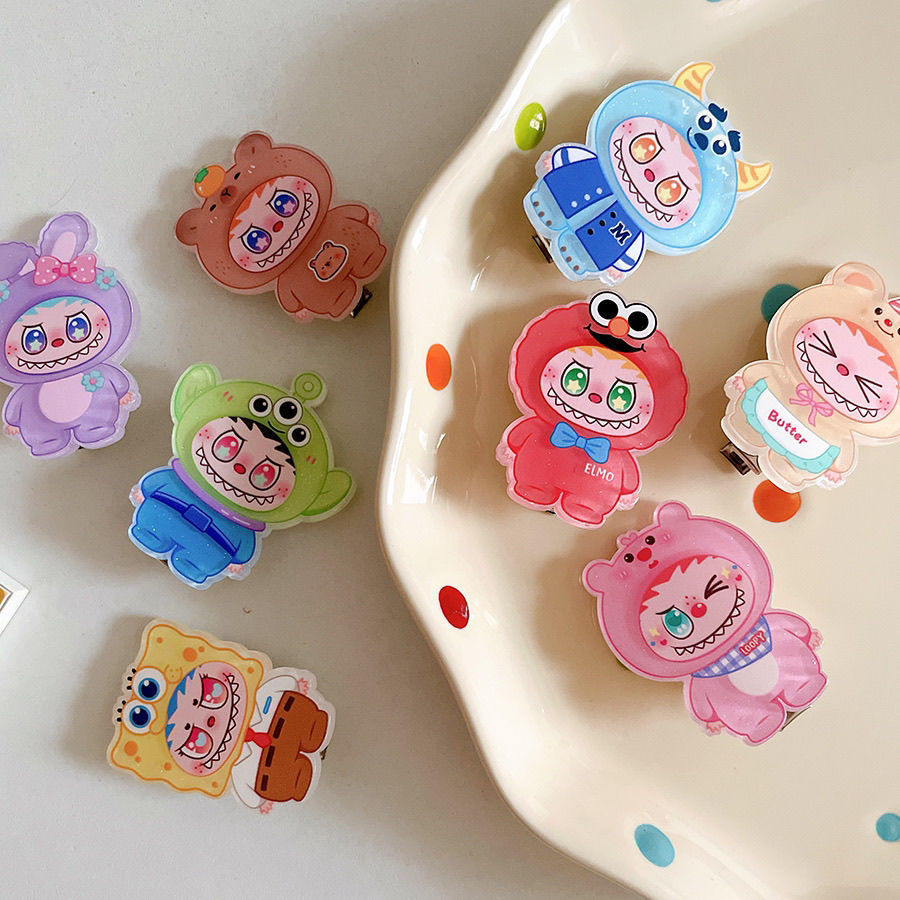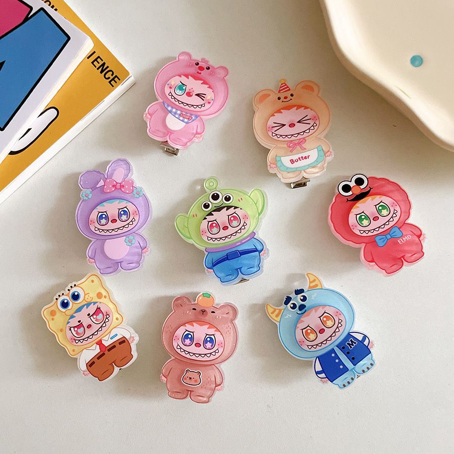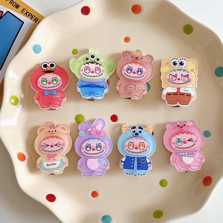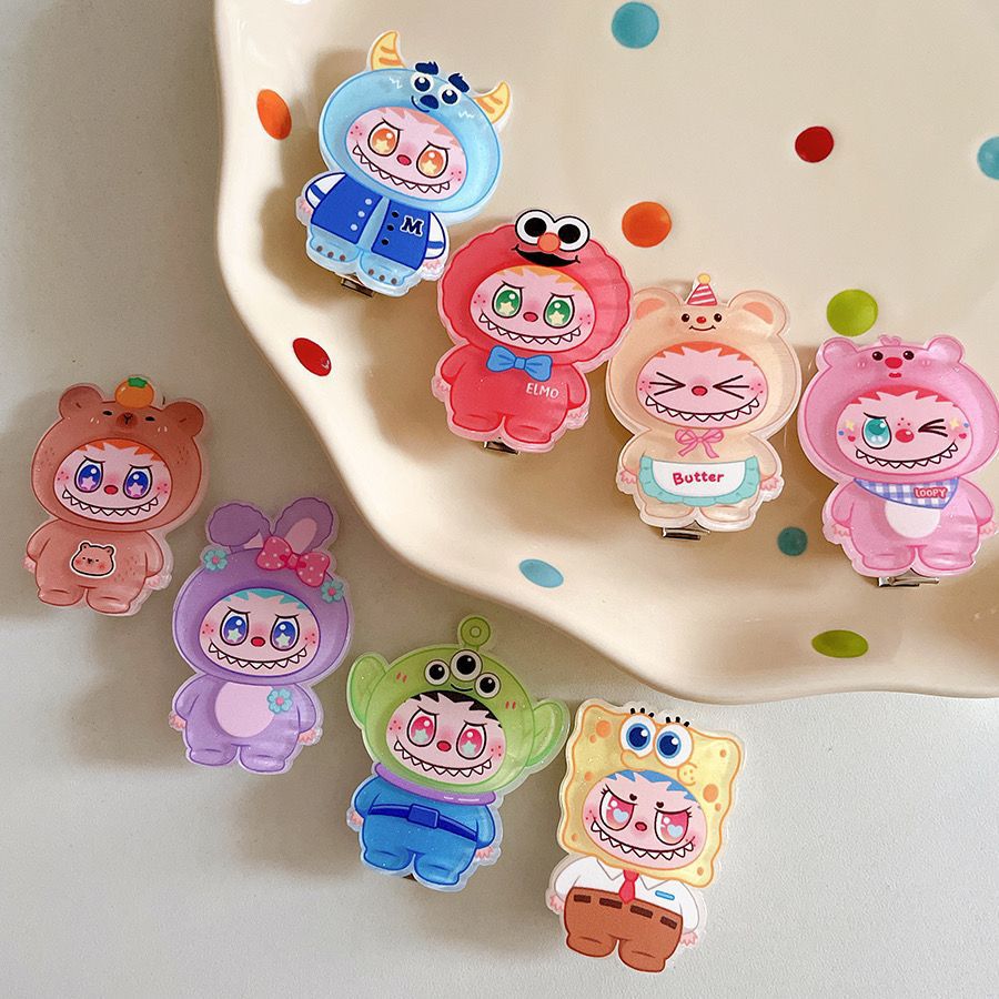 拉布布labubu变装系列发夹亚克力可爱卡通少女刘海侧边夹学生发饰