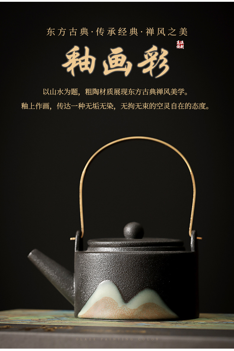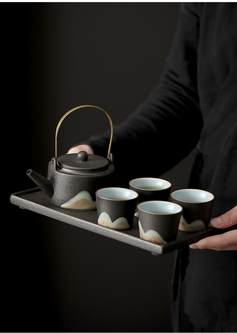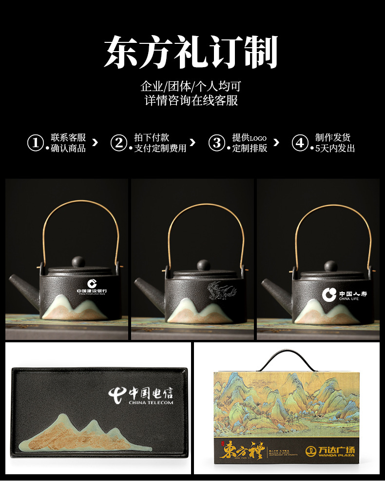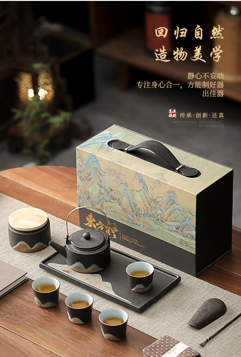 zen black loop-handled teapot 7-piece set thousand-li landscape oriental rites(禅黑提梁壶7件套千里江山东方礼) USD $0.0 868 set available