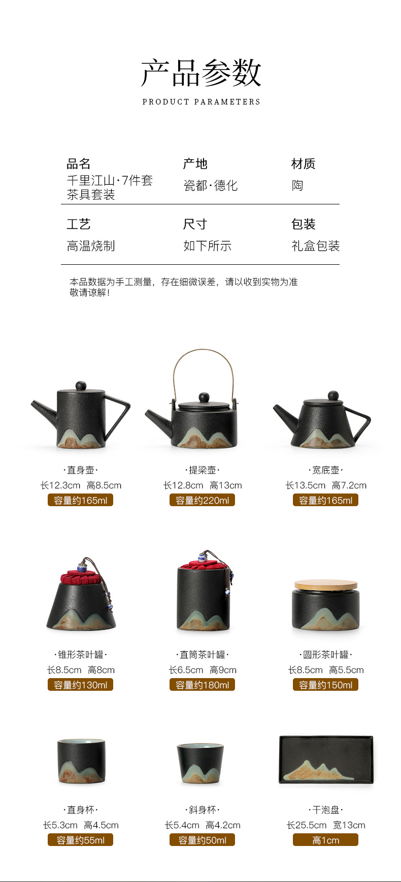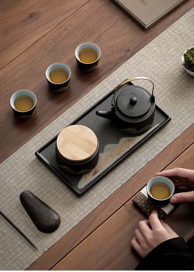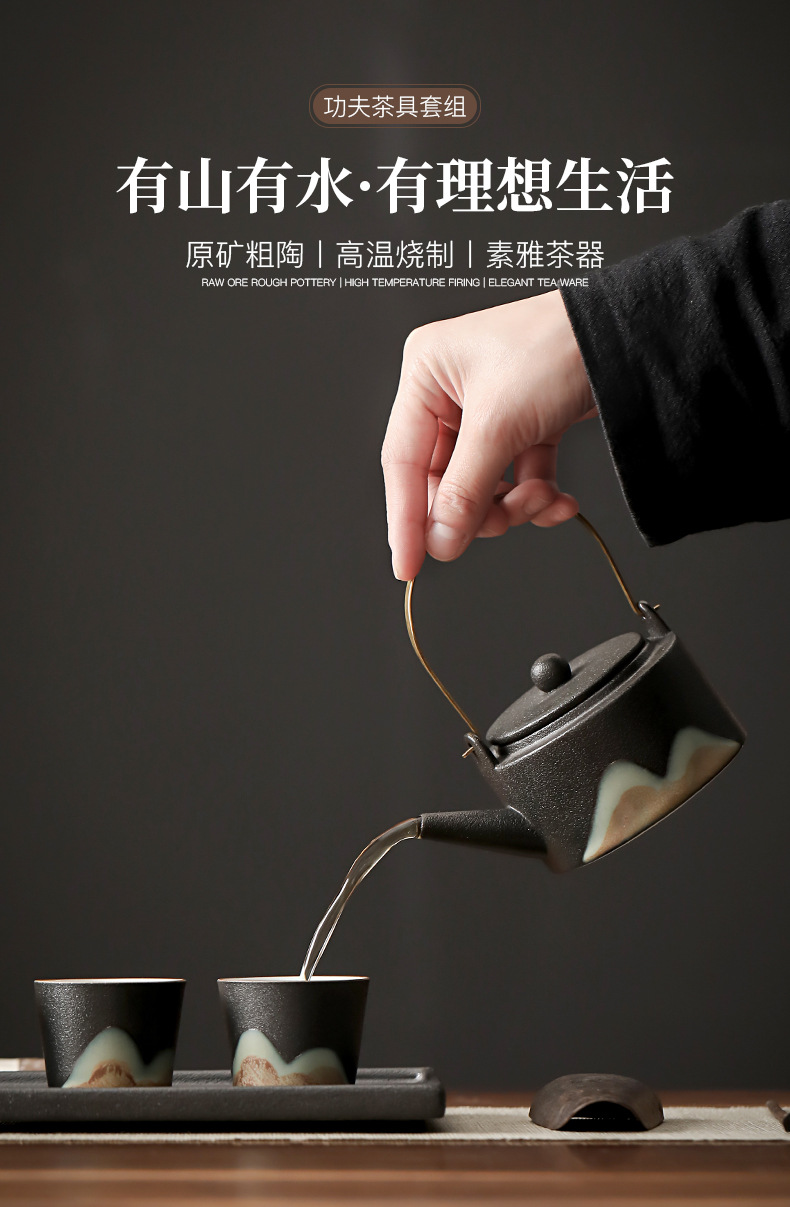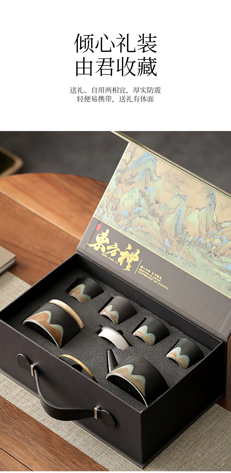 zen black loop-handled teapot 7-piece set thousand-li landscape oriental rites(禅黑提梁壶7件套千里江山东方礼) USD $0.0 868 set available