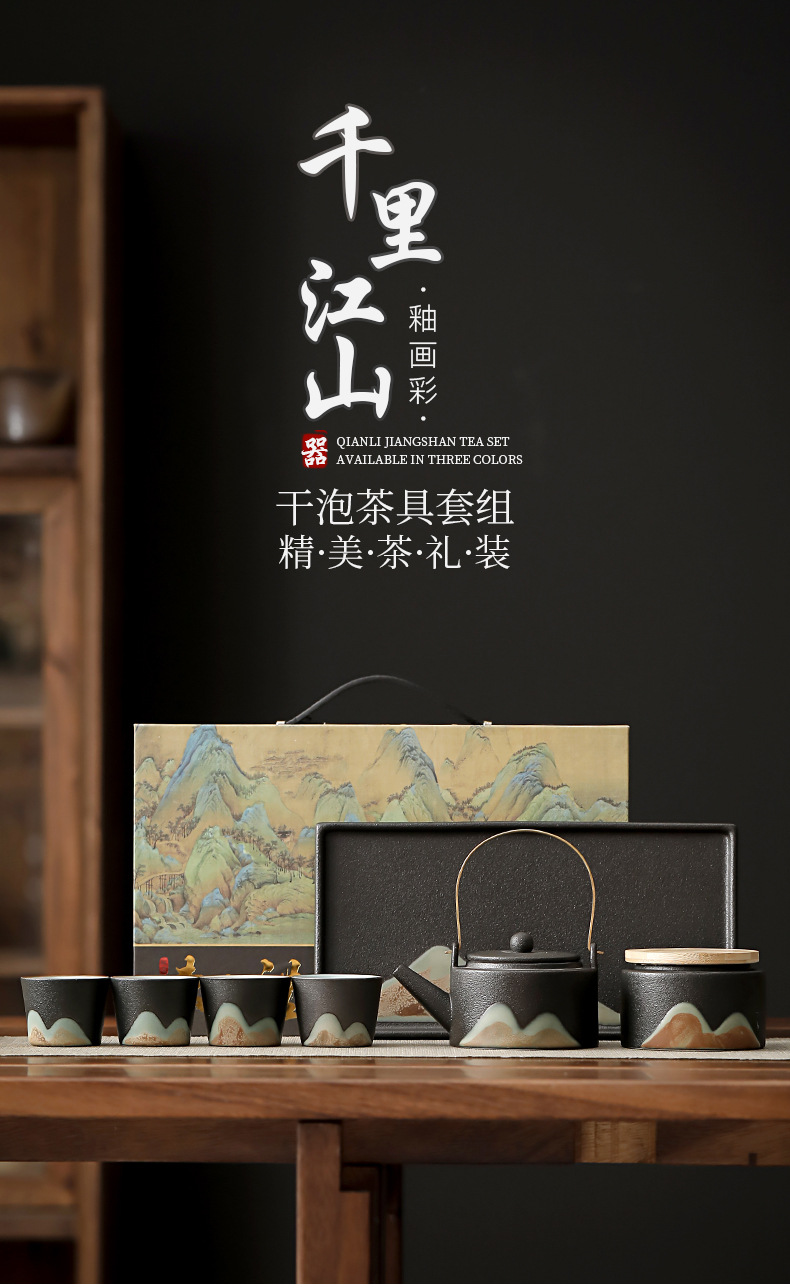 thousand-li landscape tea set suit full set household japanese style teapot suit porcelain kung fu tea set full set gift box