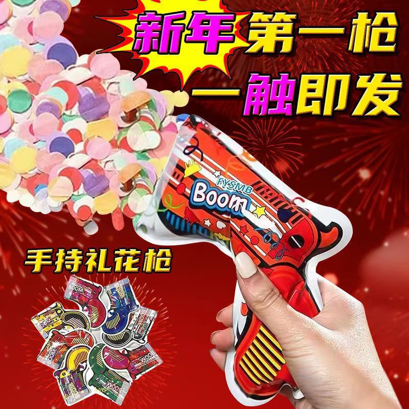 聚会礼花自动充气礼花枪生日气氛道具幼儿园礼炮手持烟花枪礼花枪