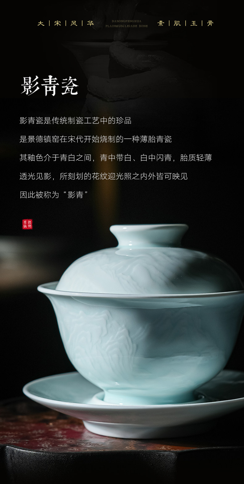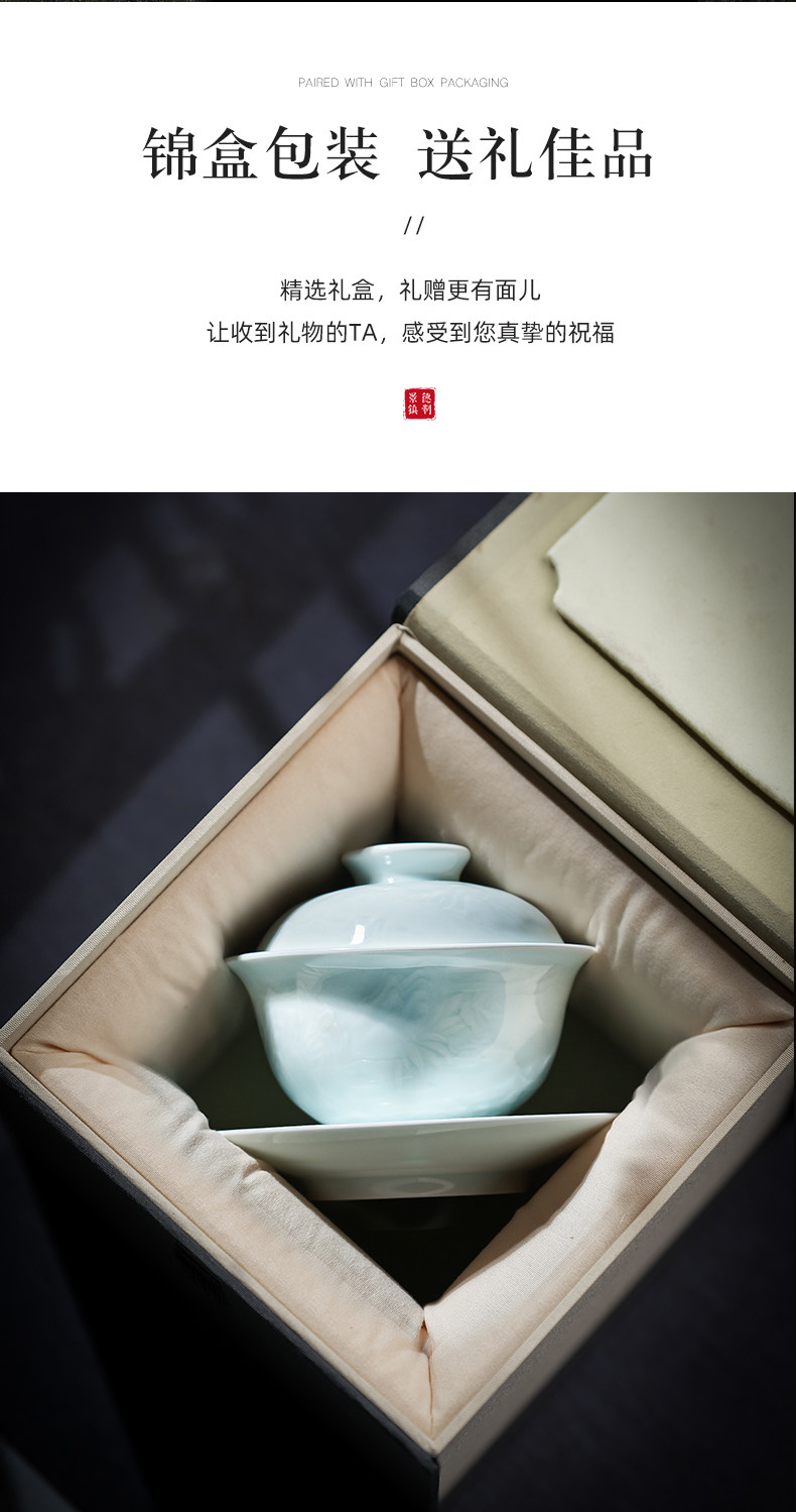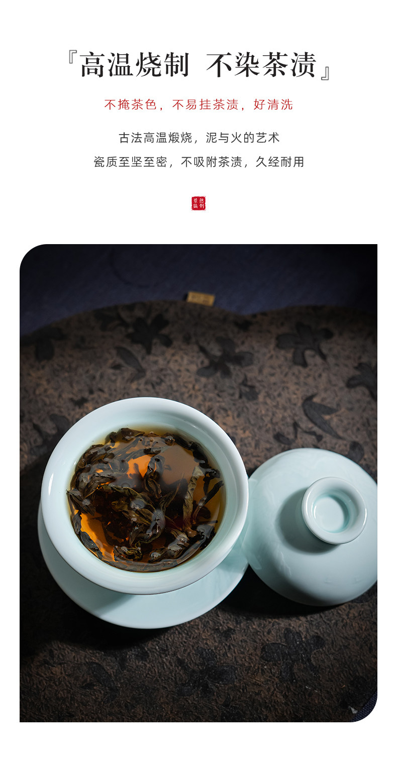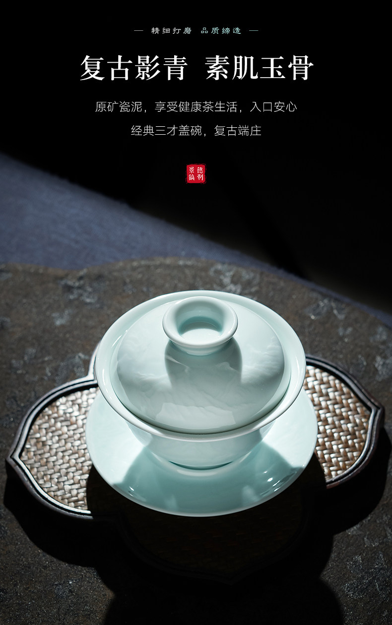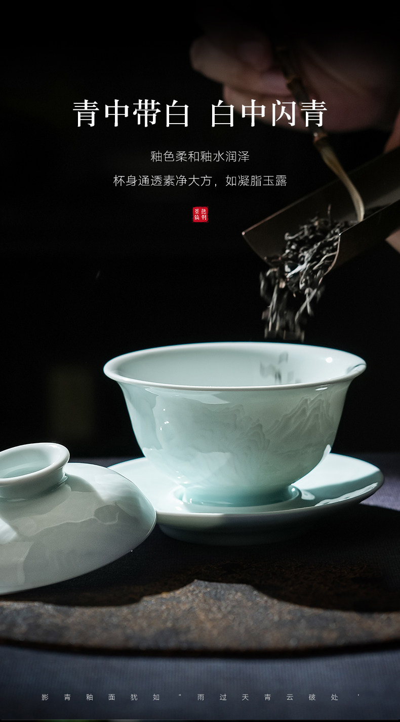 景德镇陶瓷功夫茶具影青白瓷三才盖碗茶杯单个高档茶碗泡茶不烫手