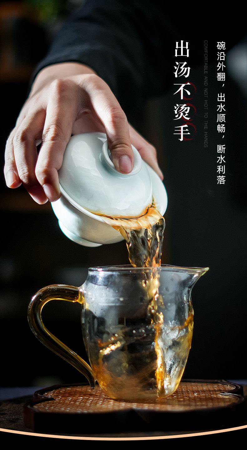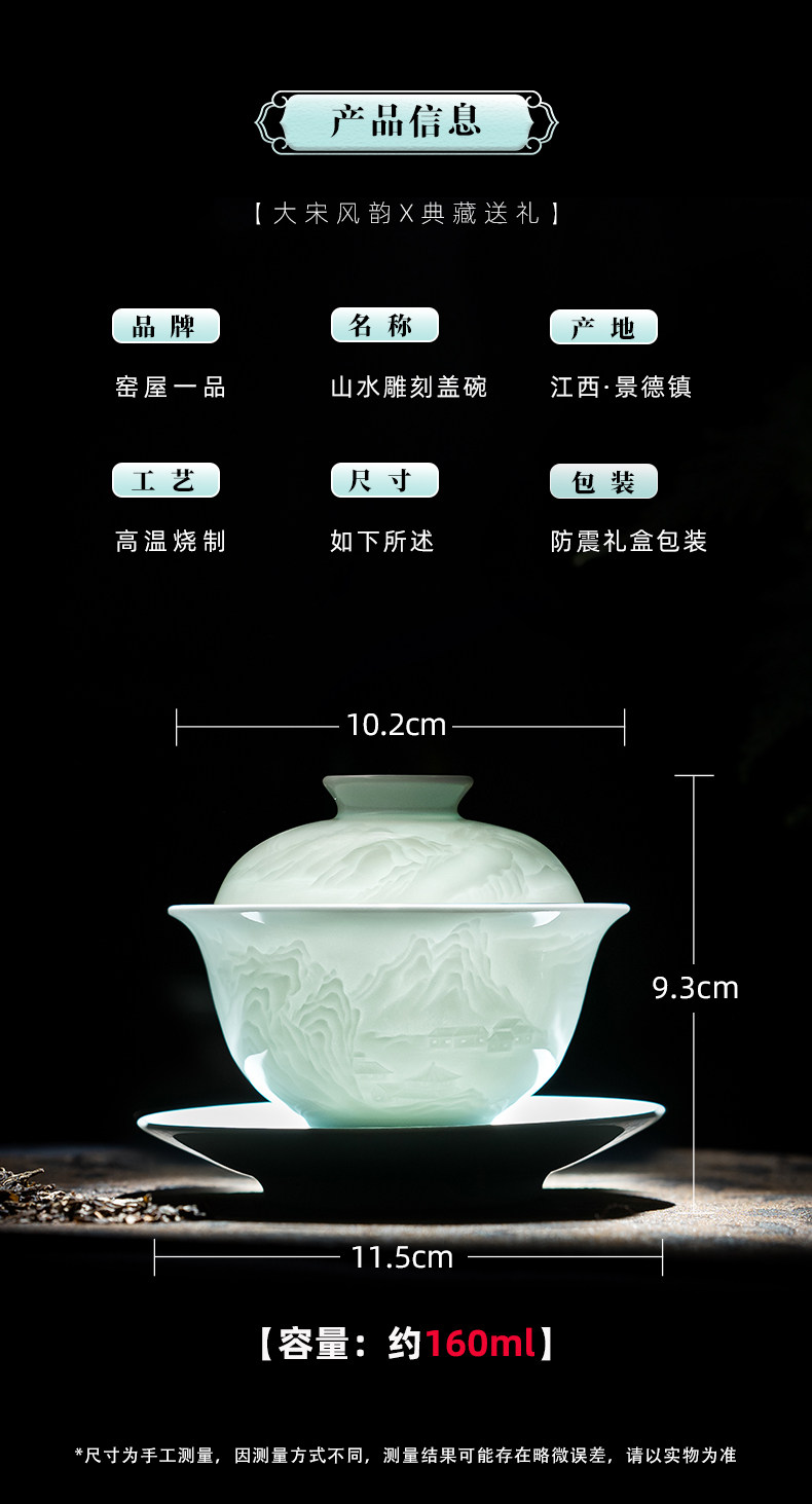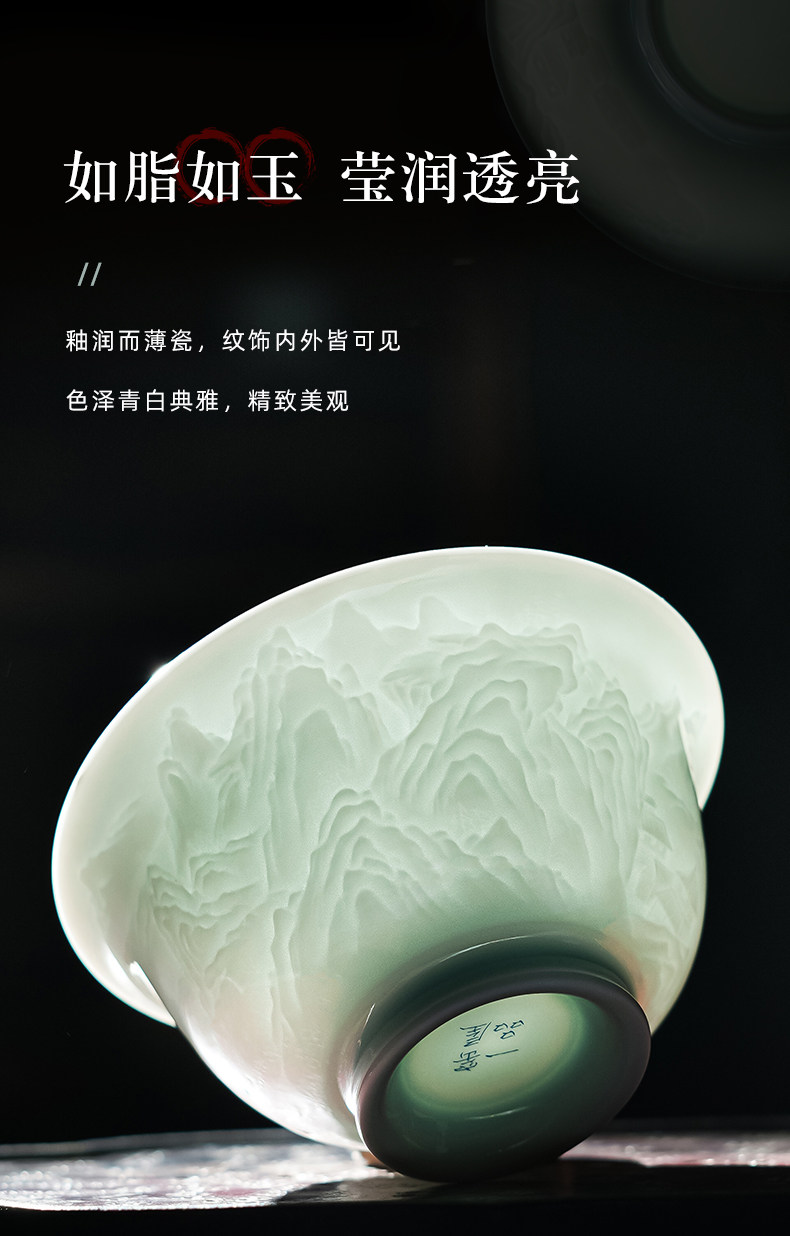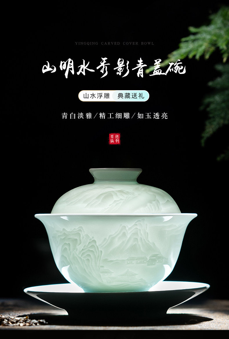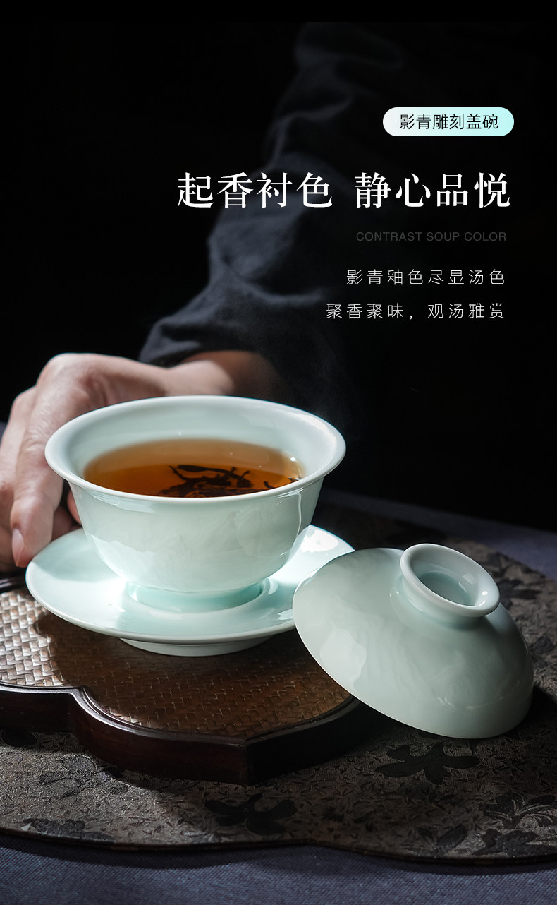 景德镇陶瓷功夫茶具影青白瓷三才盖碗茶杯单个高档茶碗泡茶不烫手