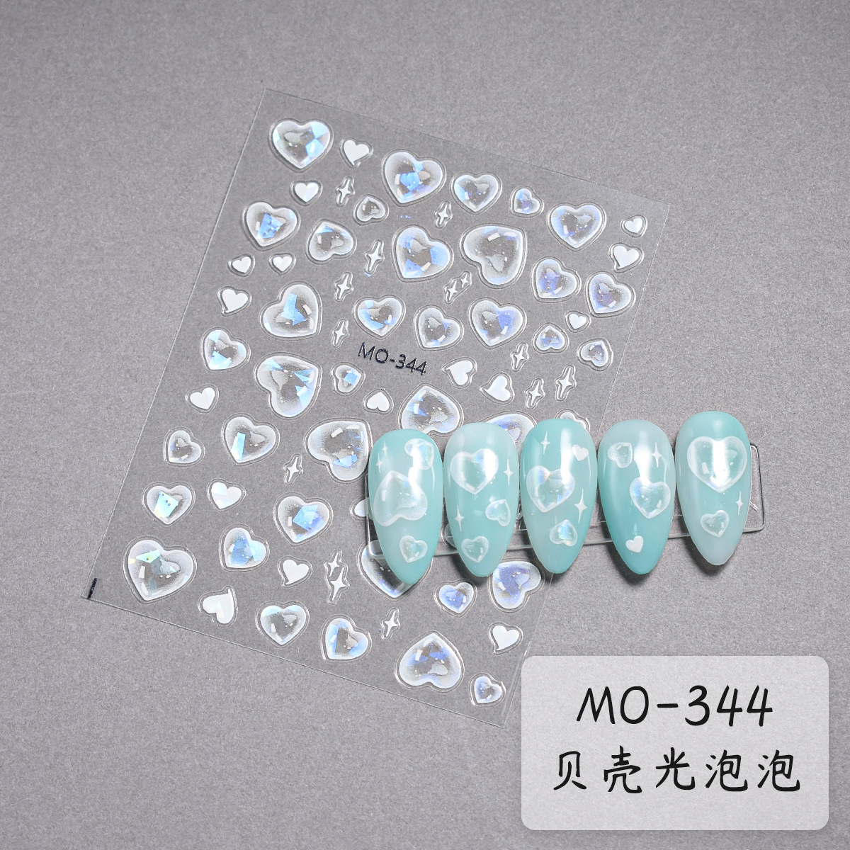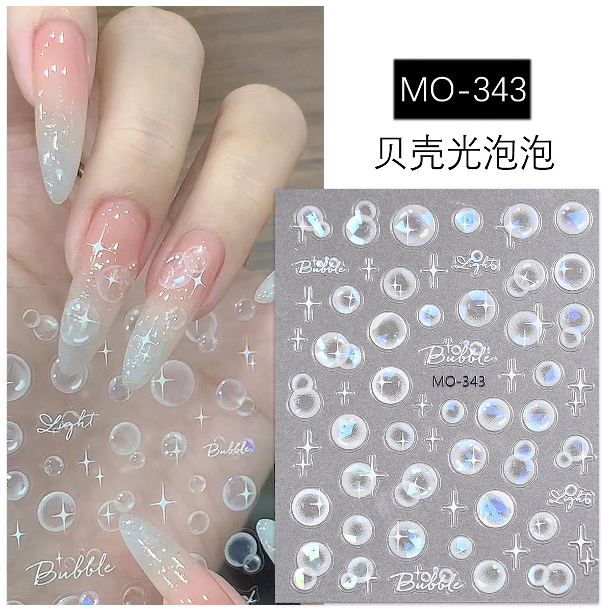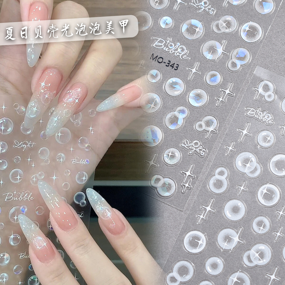 爆款夏日贝壳光水泡泡美甲贴纸日系梦幻可爱浮雕指甲贴 花装饰品