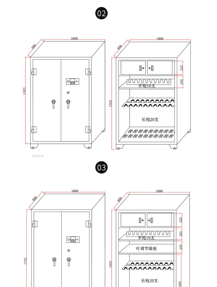 | rifle cabinet 1500*1000*500 [20 rifles, 10 short guns]](步枪柜1500*1000*500【20支步枪,10支短枪】) | USD $441.29 | 998 table available |