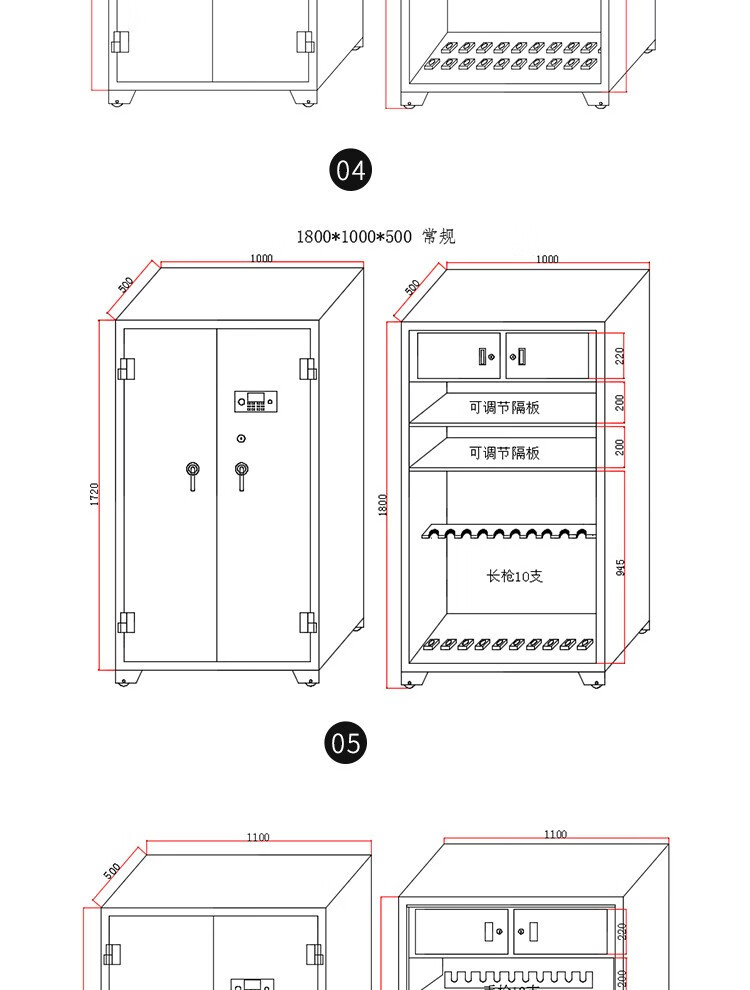 | gun cabinet 1800*1000*500 [10 pieces per floor, 50 pieces in total]](手枪柜1800*1000*500【每层10支,共计50支】) | USD $470.07 | 998 table available |