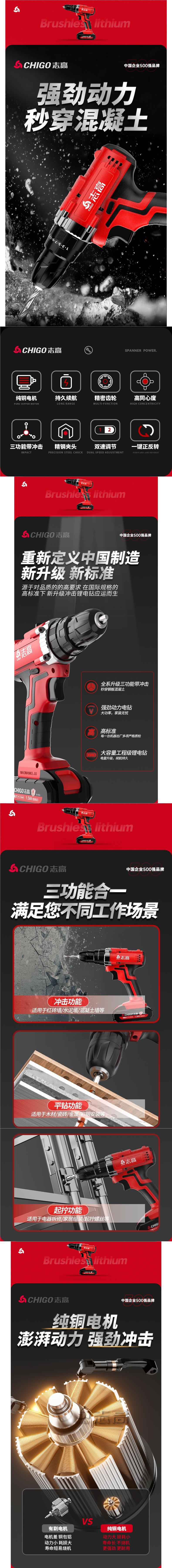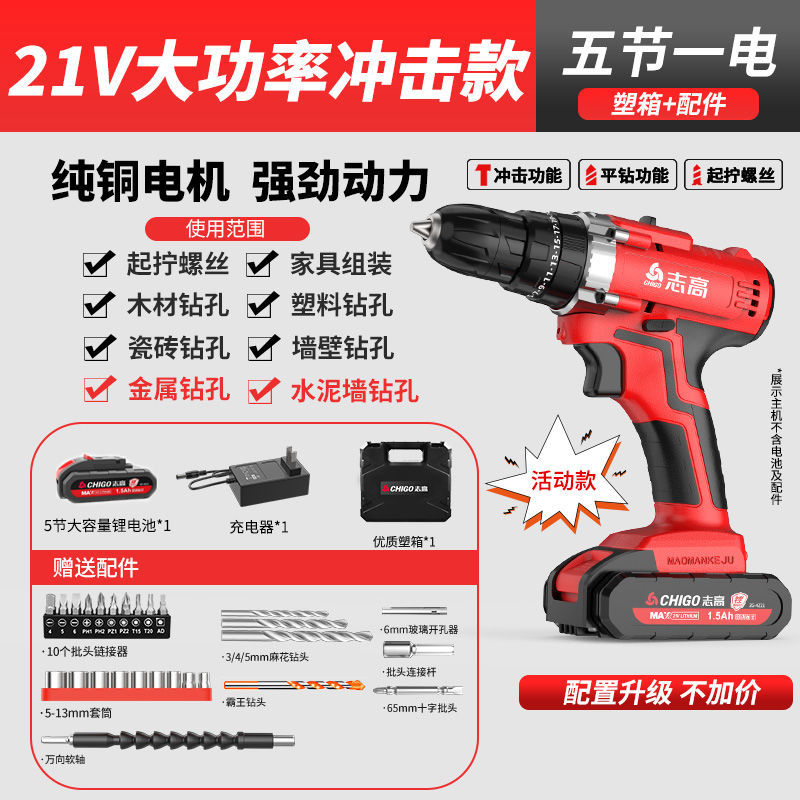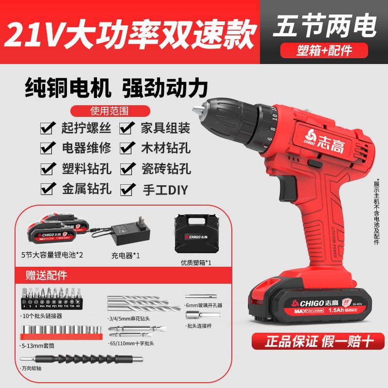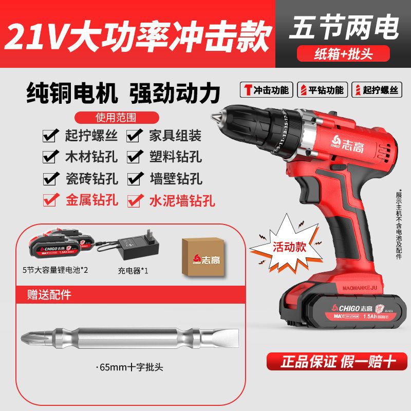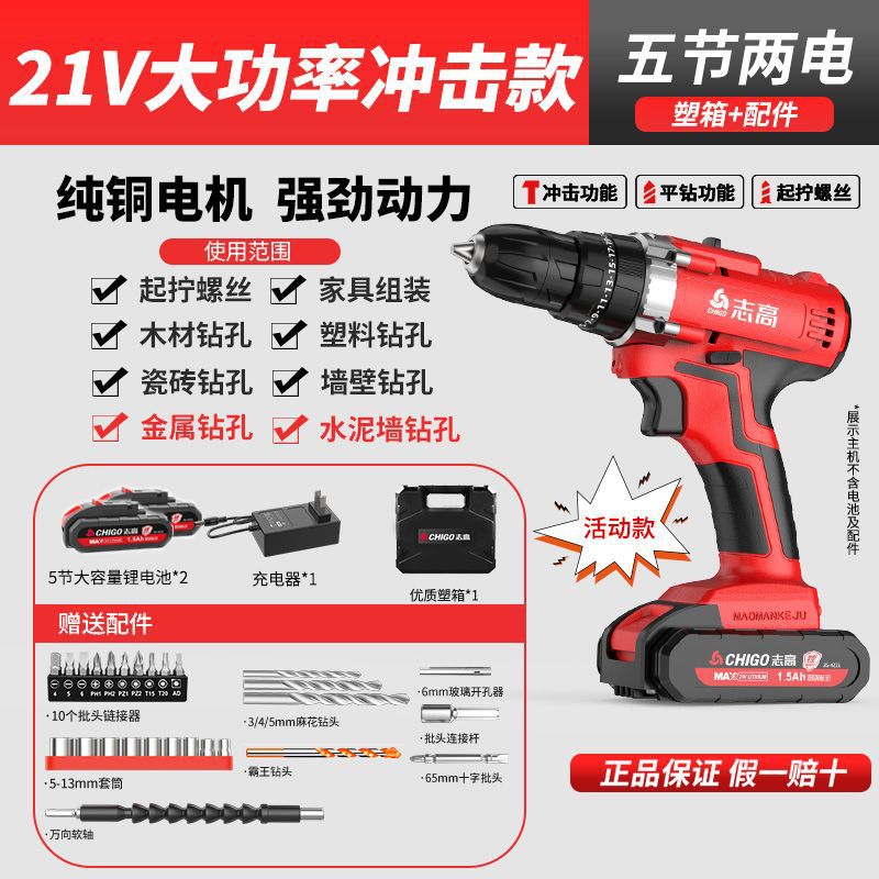 志高手电钻转家用电钻充电式工具锂电多功能冲击手枪钻电动螺丝刀