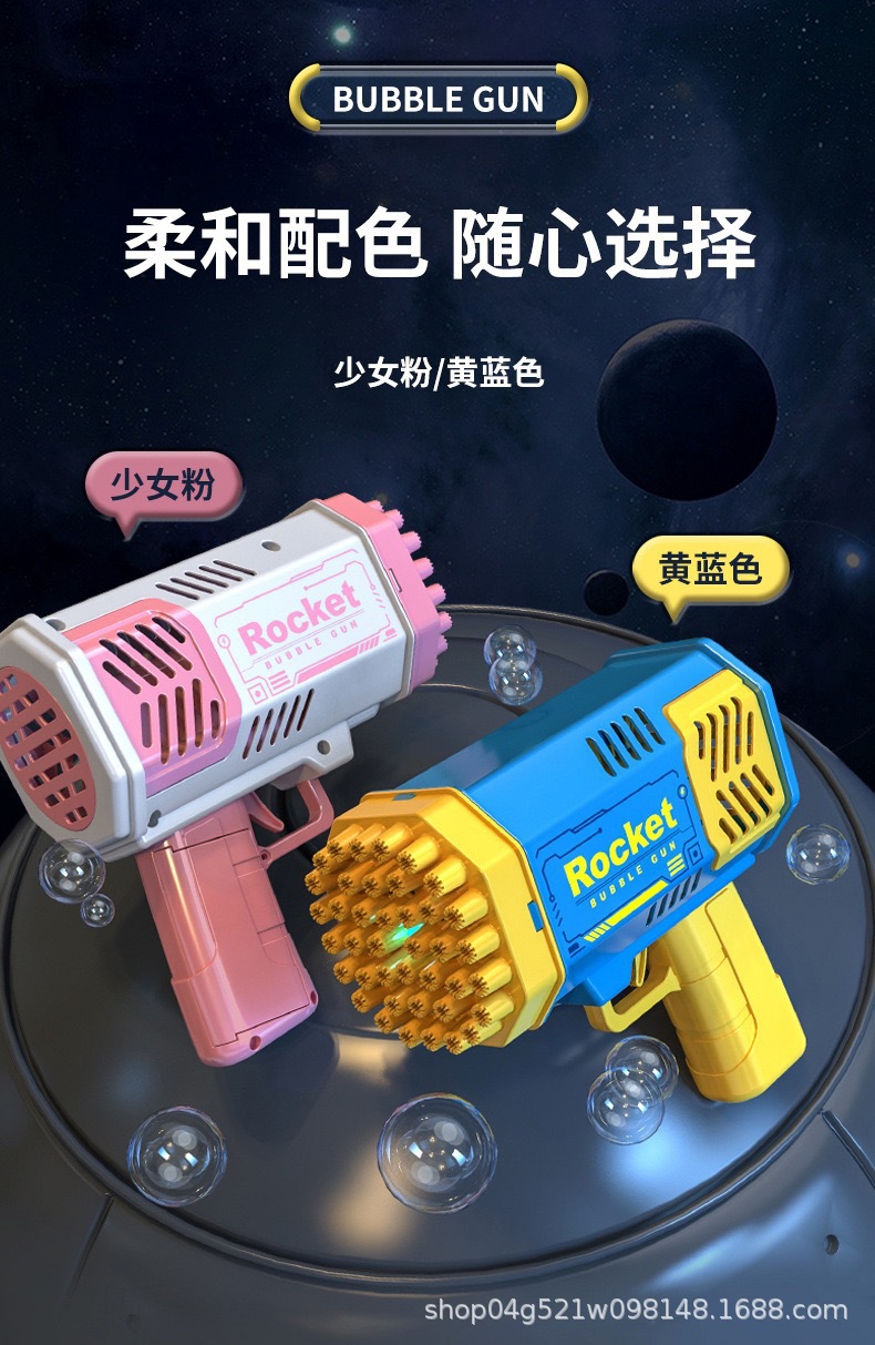 40孔太空泡泡机儿童手持灯光加特林全自动烟花枪泡泡机男女孩玩具