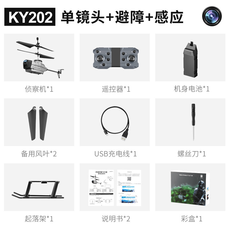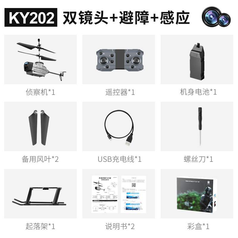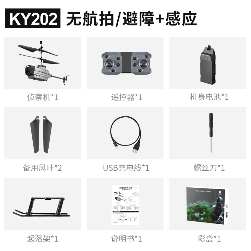 跨境KY202黑峰无人机感应避障侦察直升机高清航拍定高飞行器玩具