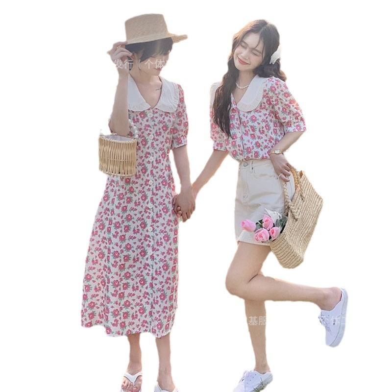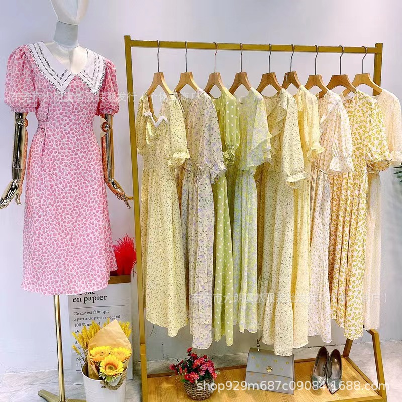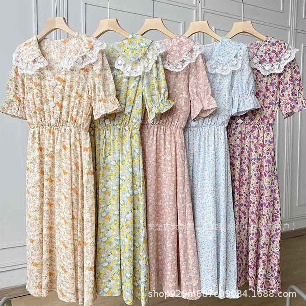 2025新款女装雪纺连衣裙时尚甜美气质长短袖碎花裙地摊服装 批发