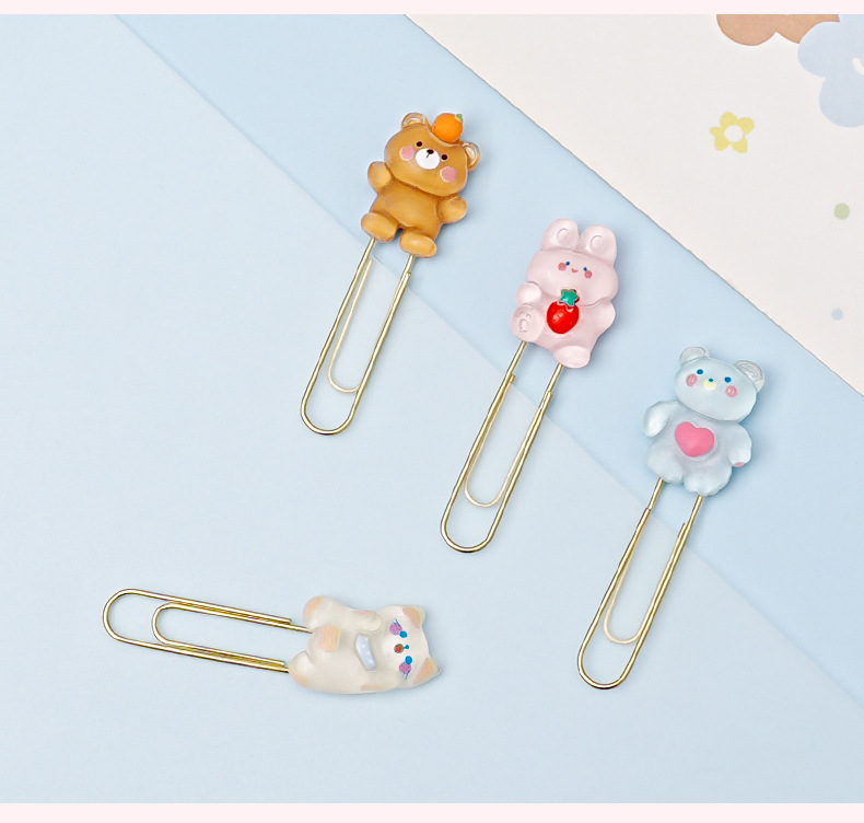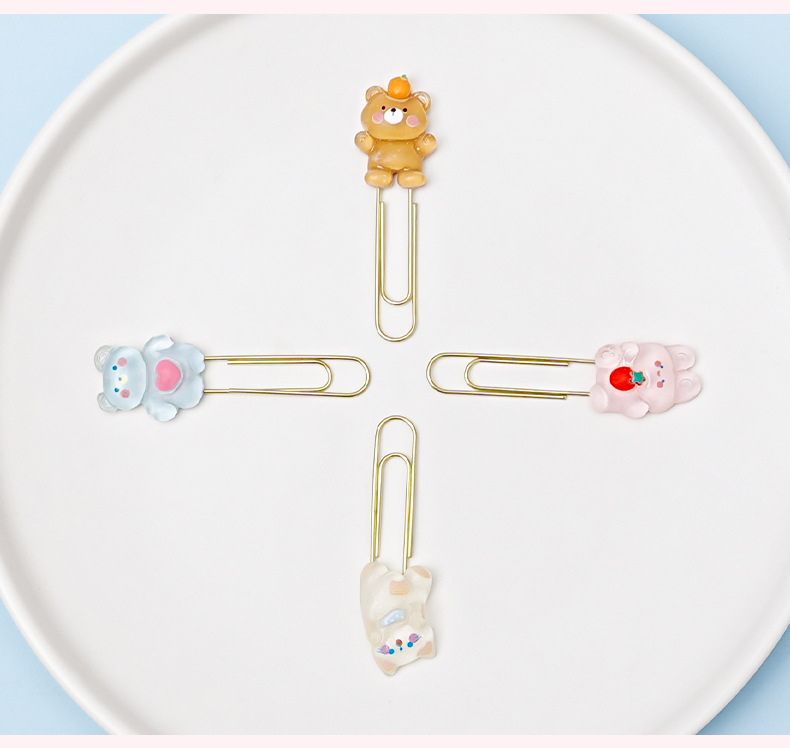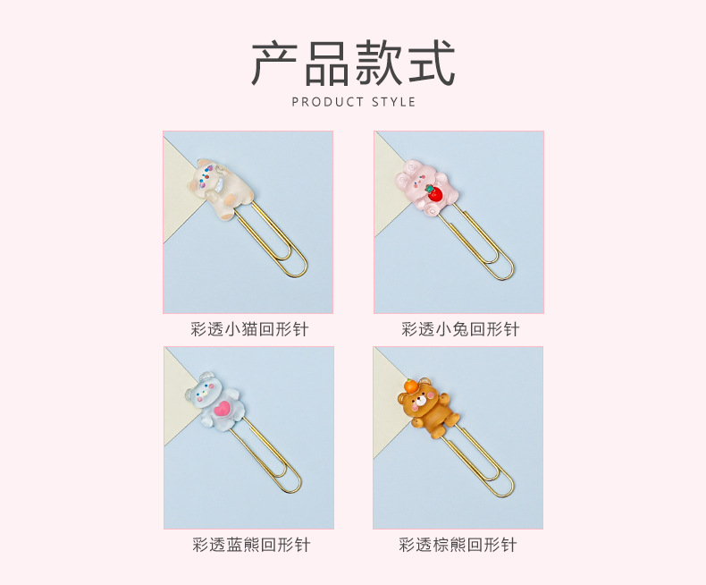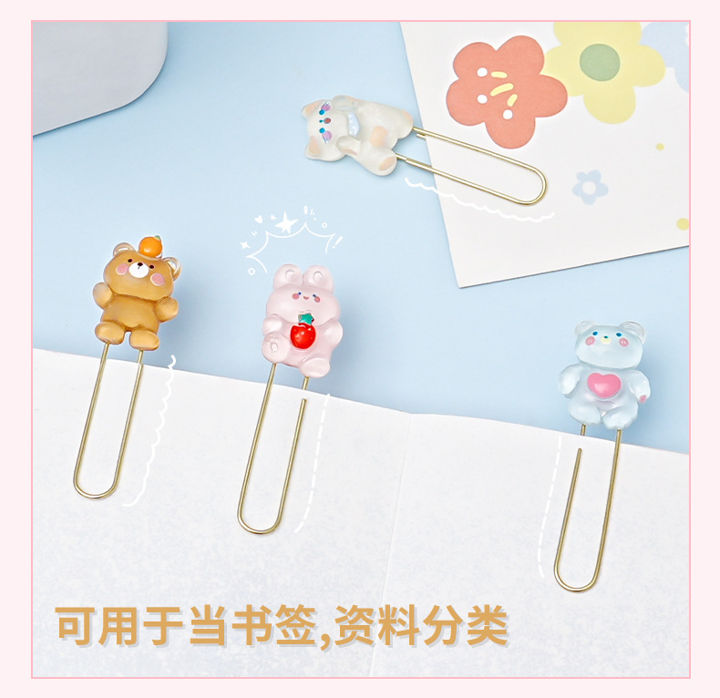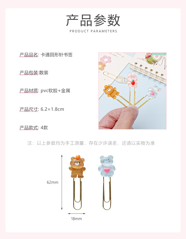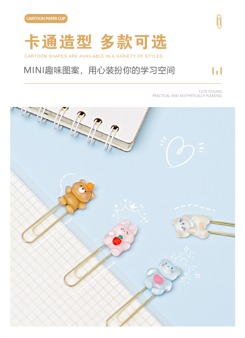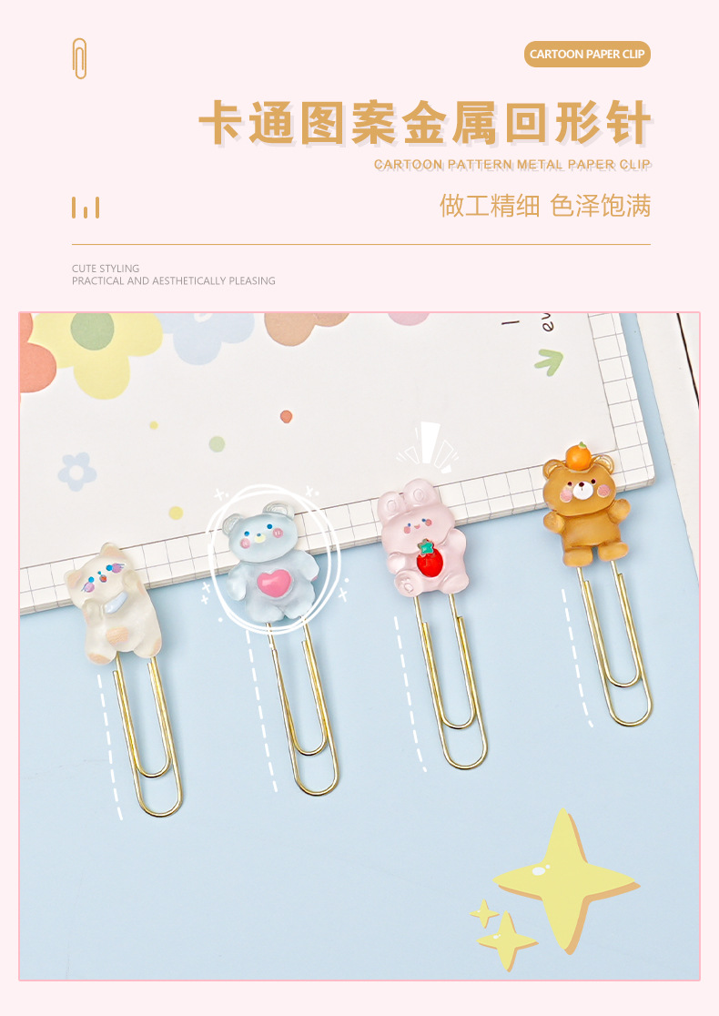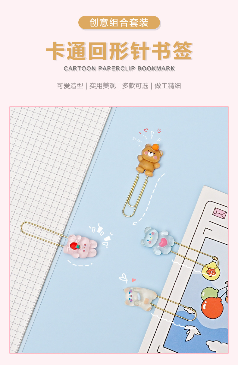可爱小熊回形针书签卡通办公用品别针彩色书签夹子夹试卷曲别针