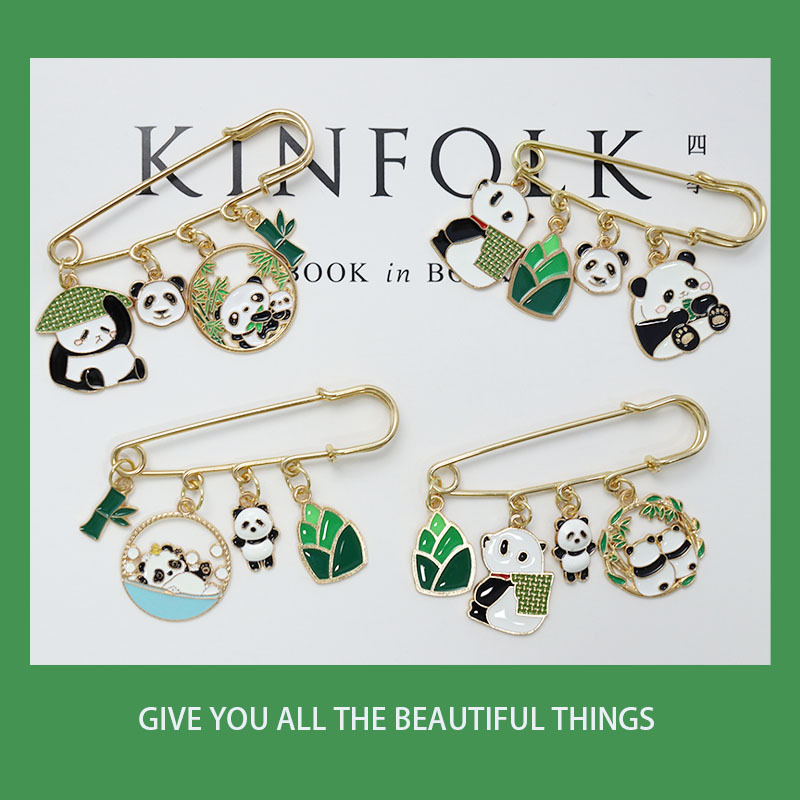 中国风可爱竹子国宝熊猫胸针国潮别针包包饰品徽章胸章情侣配饰