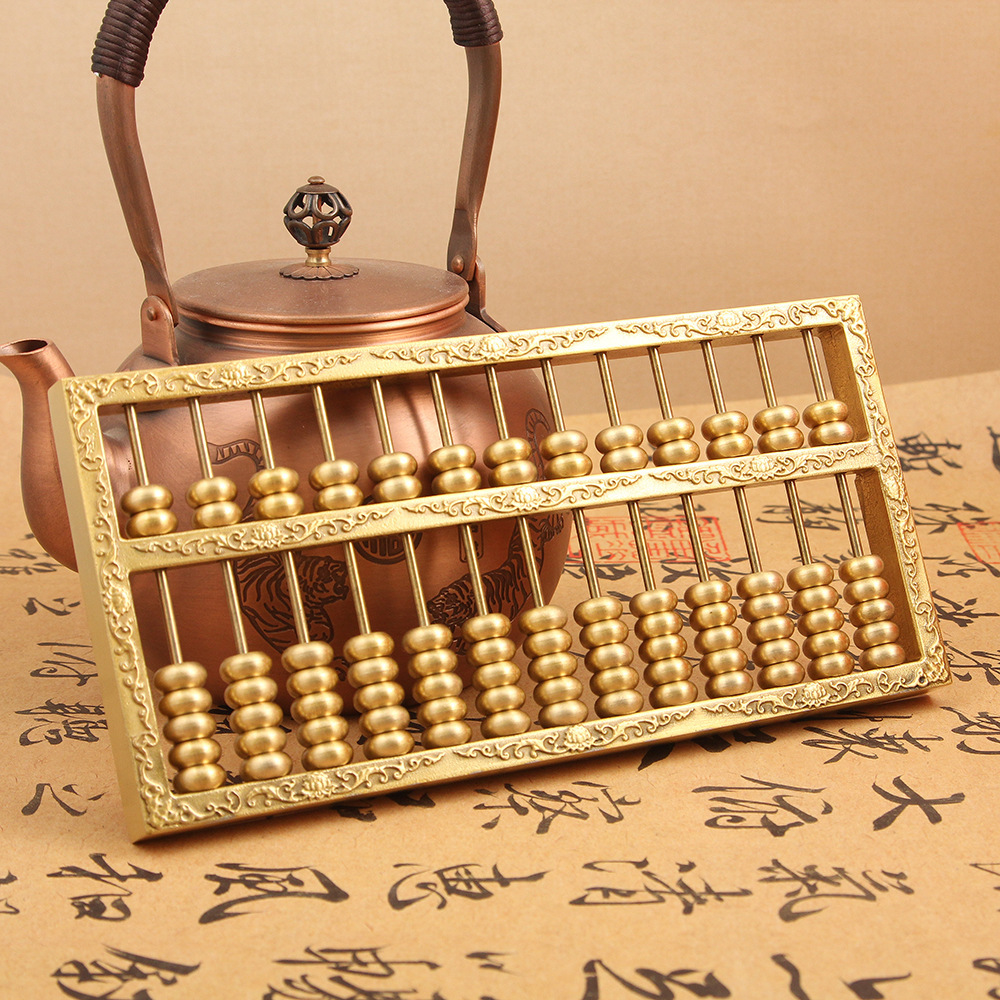 铜算盘摆件十三轴大号四方回纹实用型算盘摆件中式婚庆收礼金道具