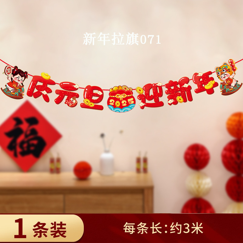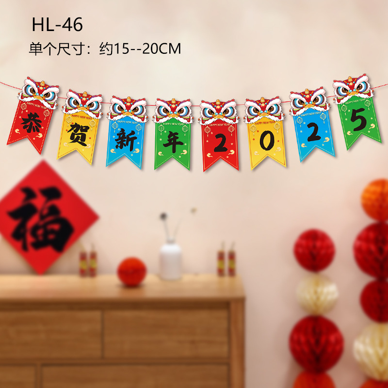 2025新年春节装饰挂饰过年装饰用品纸质蛇年拉旗商场酒店布置挂件