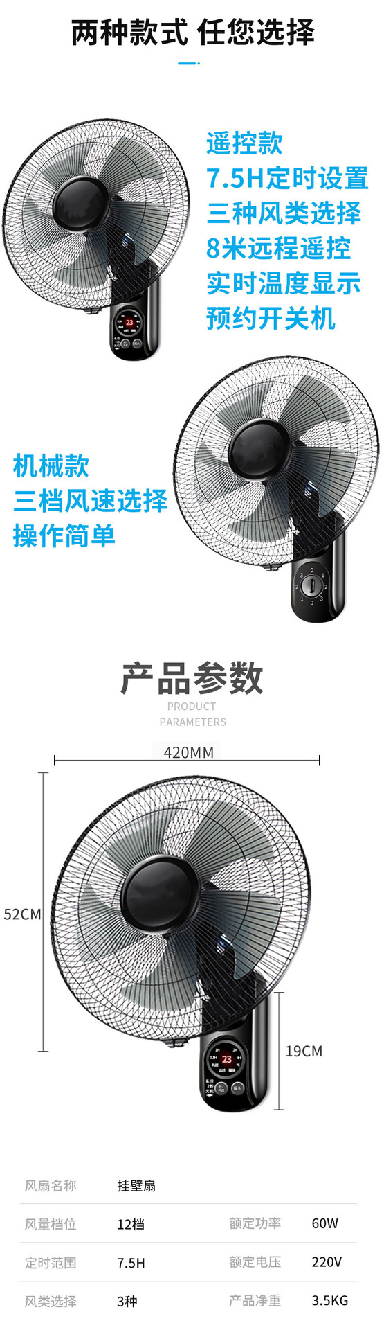 外贸挂墙电风扇壁挂式壁扇宿舍挂墙壁摇头轻音大风力挂壁风扇跨境