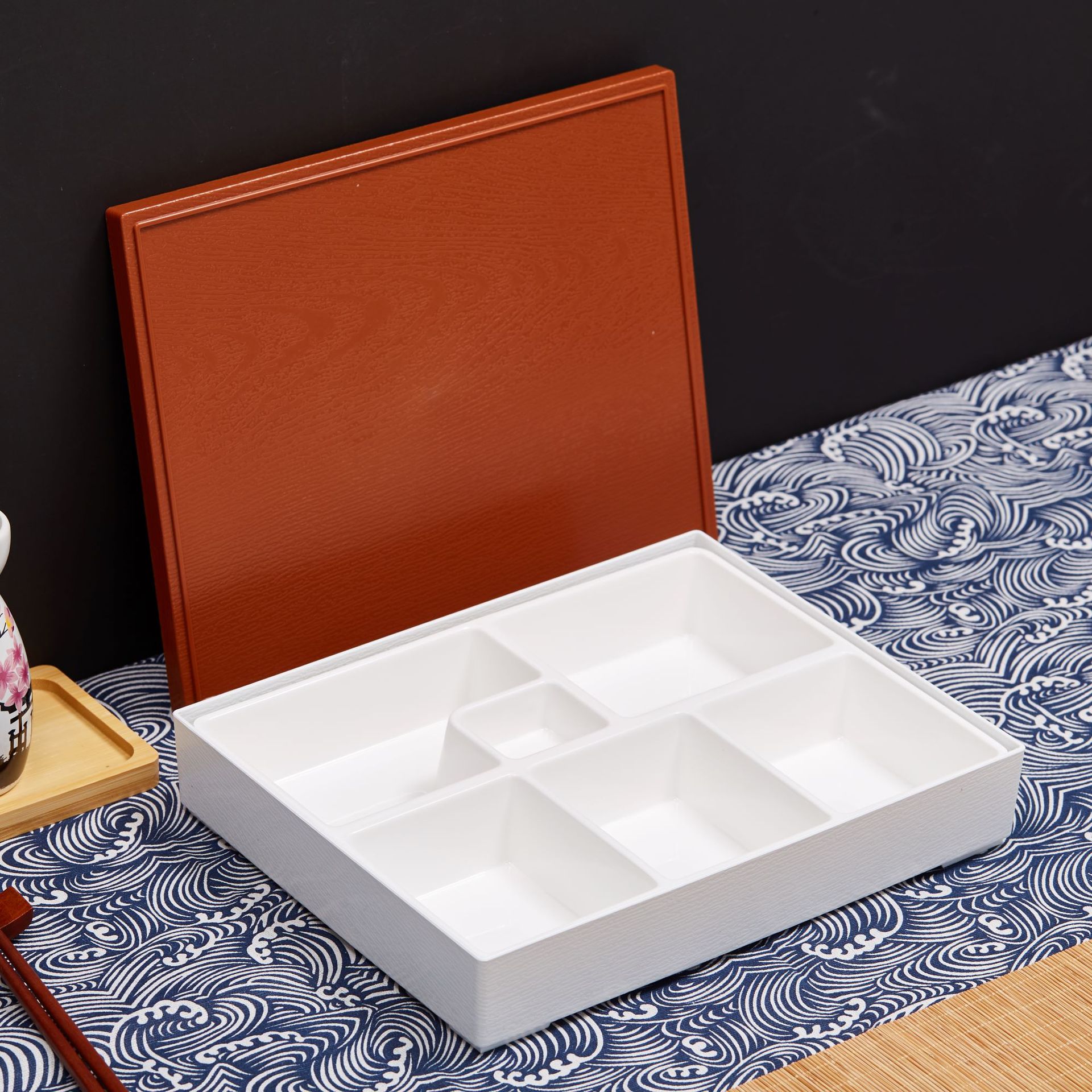日式新款白色内胆耐高温便当盒长方形寿司便当盒商务套餐盒