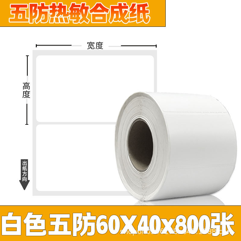 five-proof thermal synthetic paper 6040 cold chain reusable adhesive label waterproof low temperature resistant frozen food printing label paper