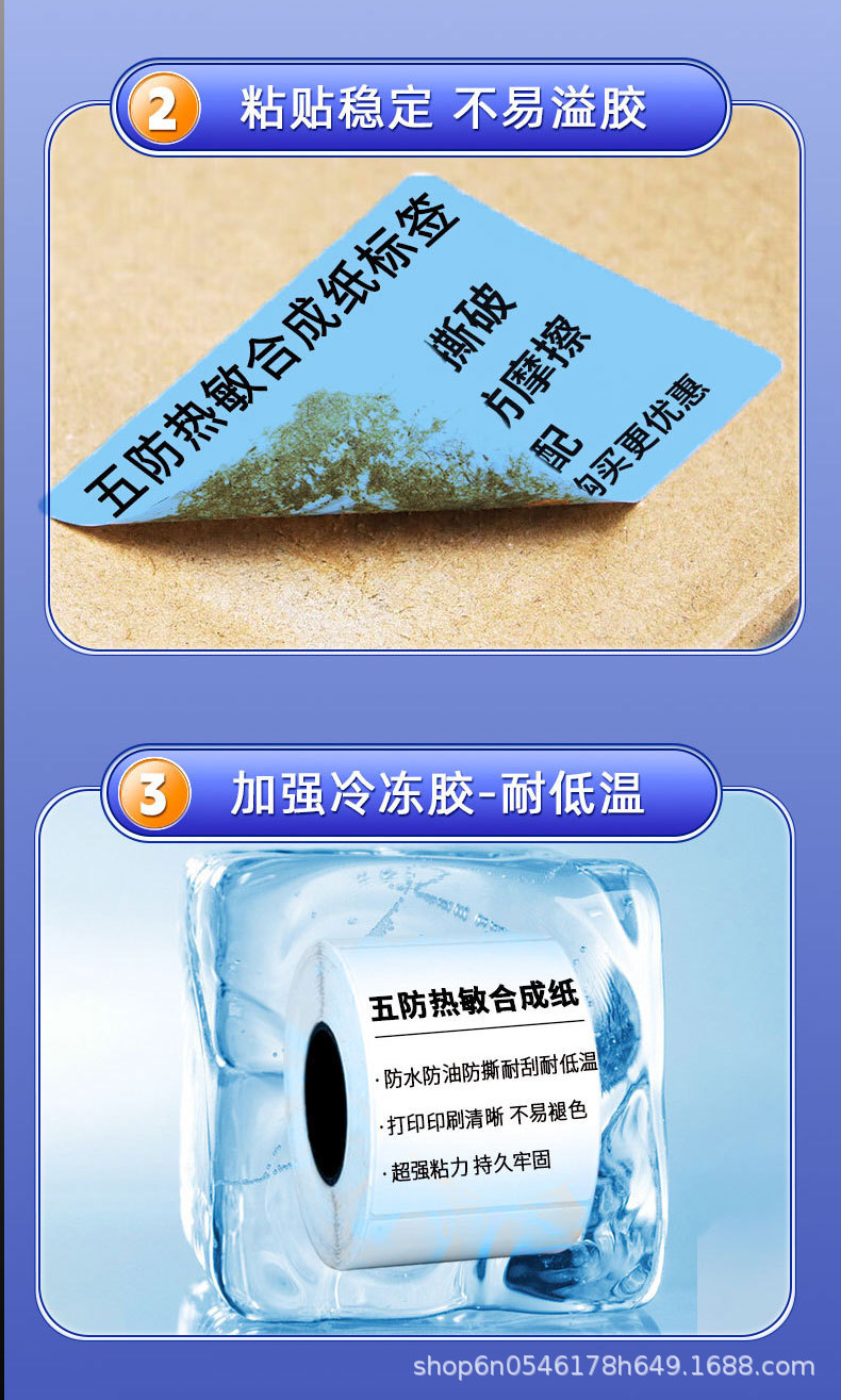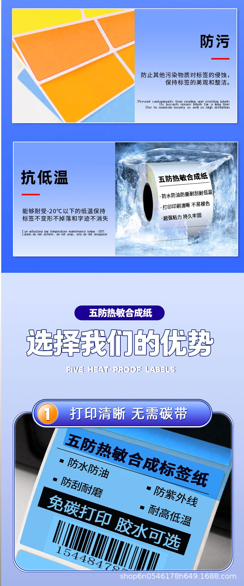 五防热敏合成纸6040冷链不干胶标贴防水耐低温冷冻食品打印标签纸