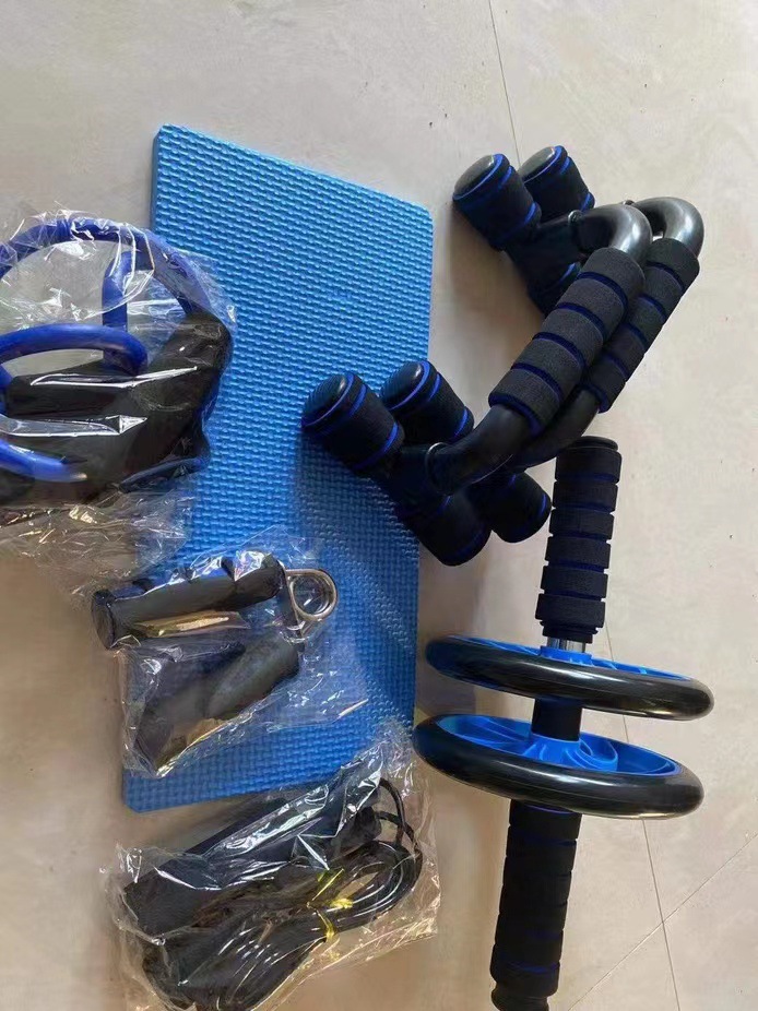 健身七件套套装小型家用健身运动器材跳绳握力器俯卧撑健腹轮肌肉