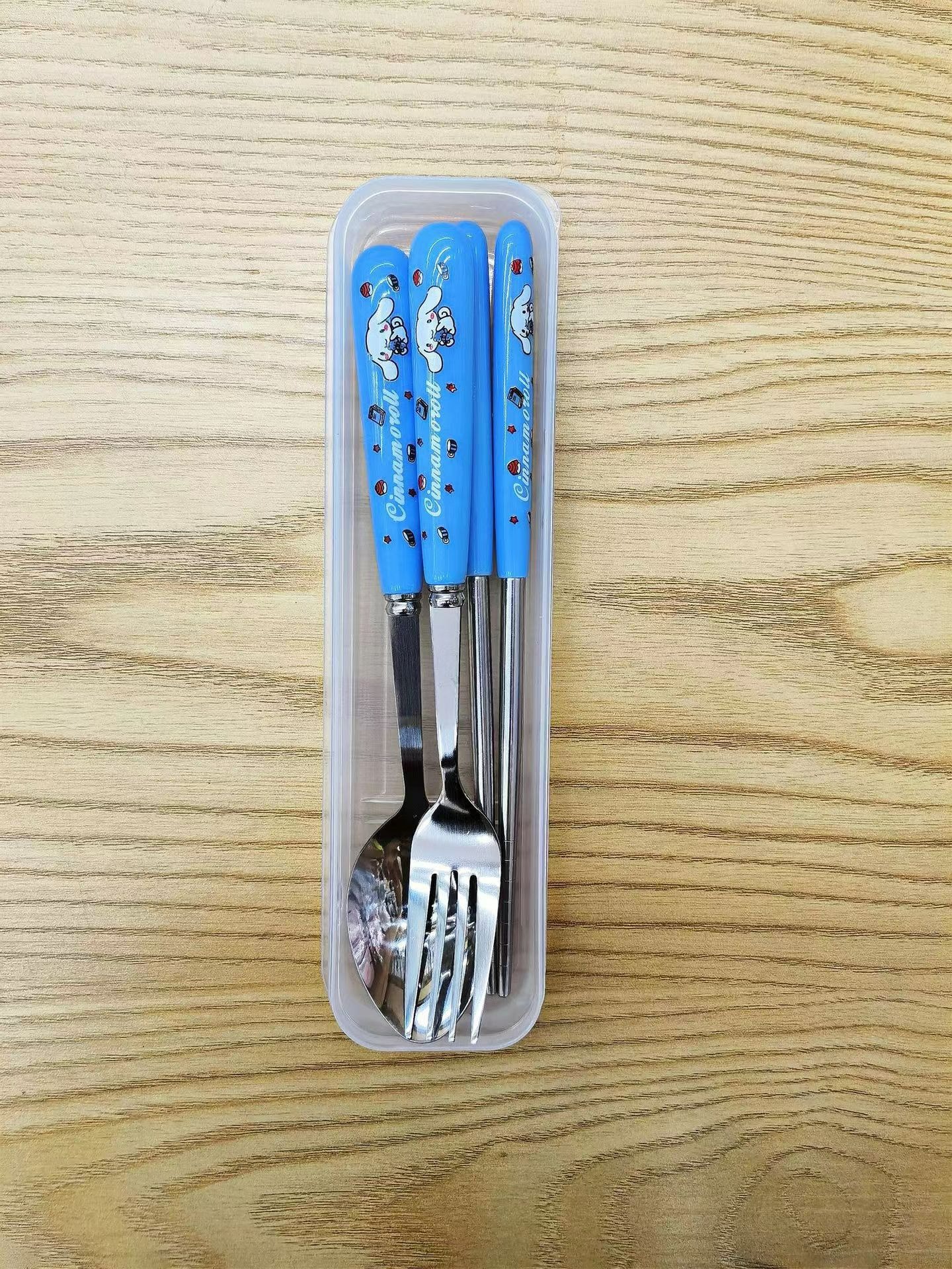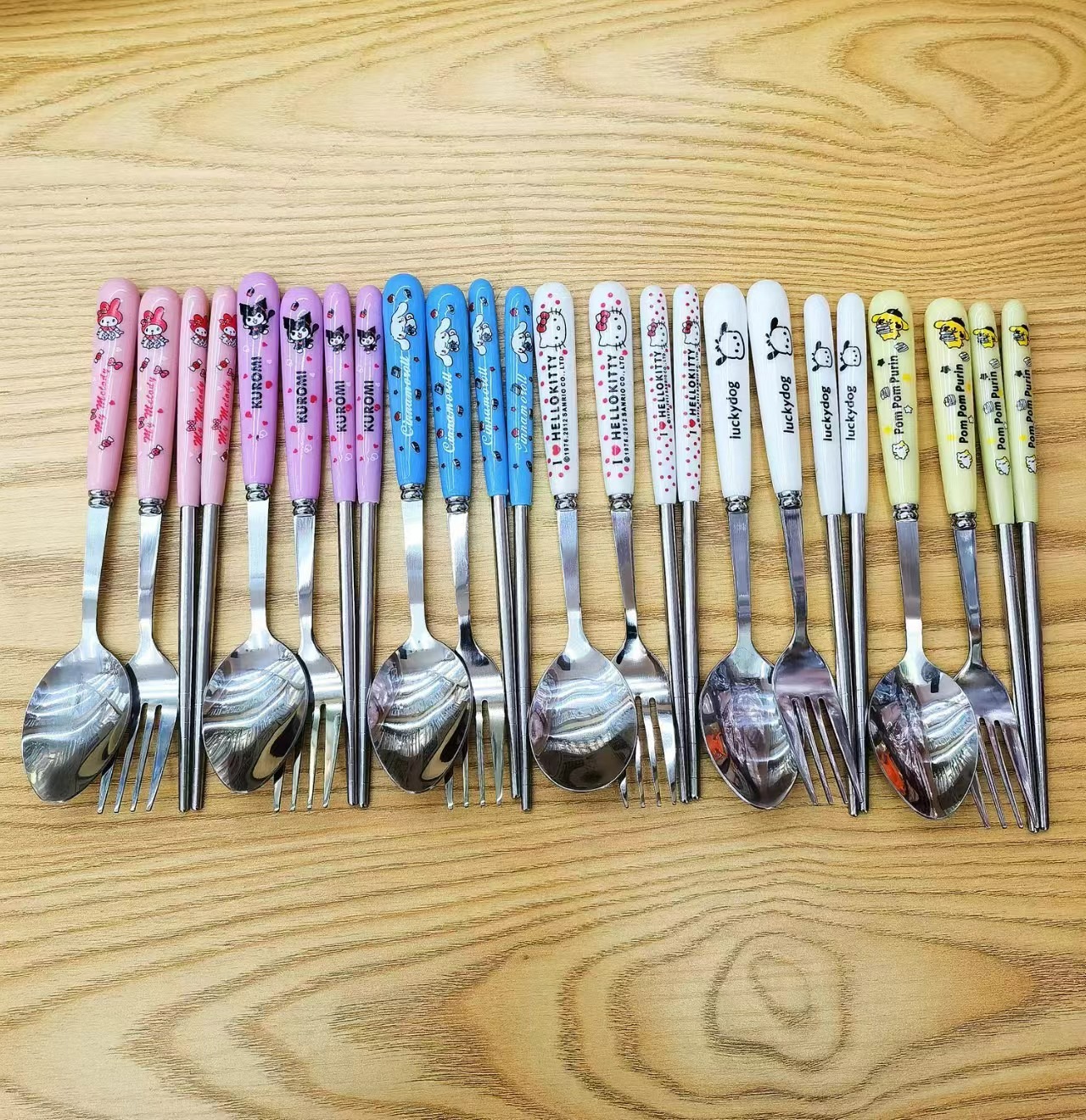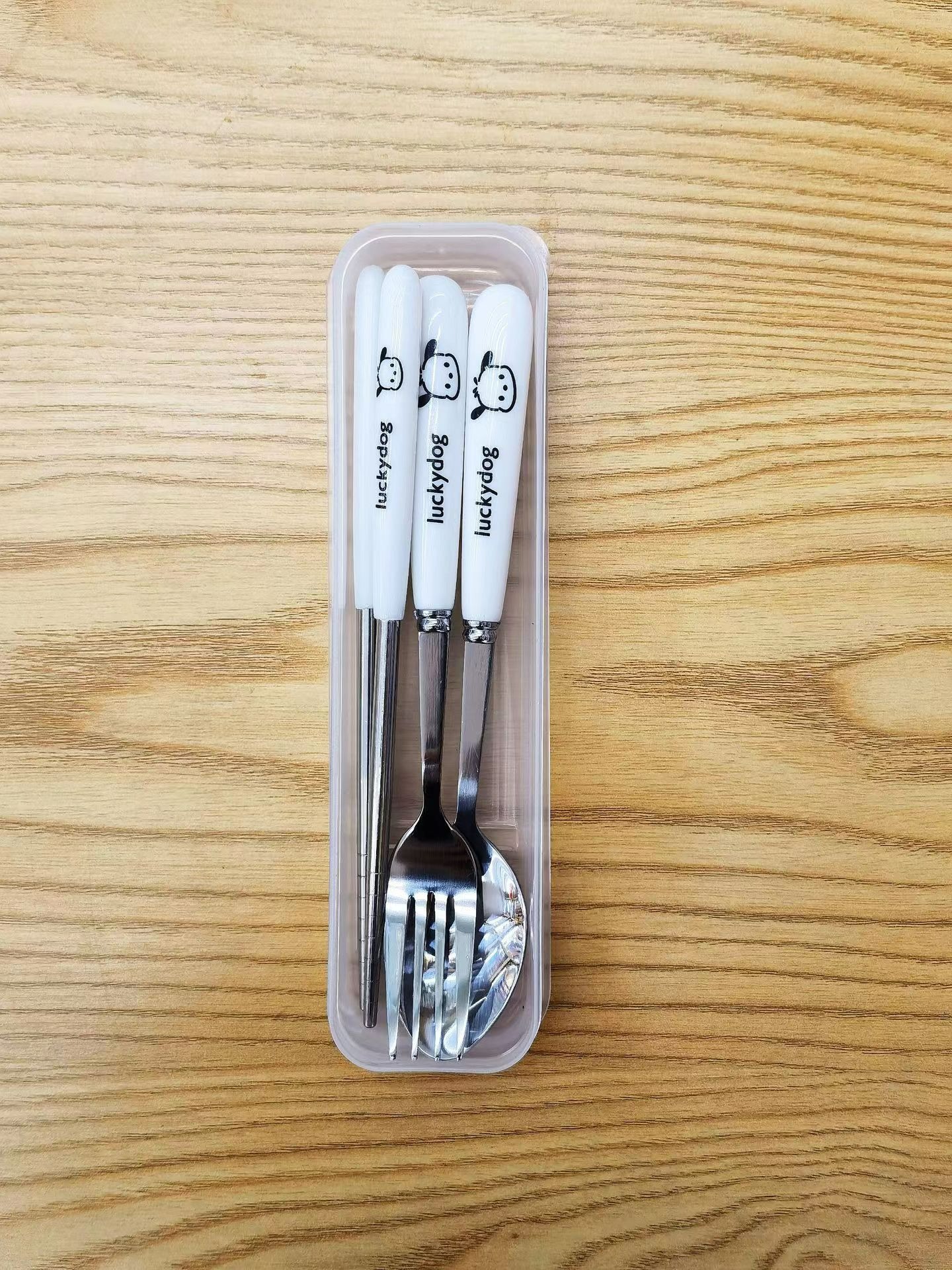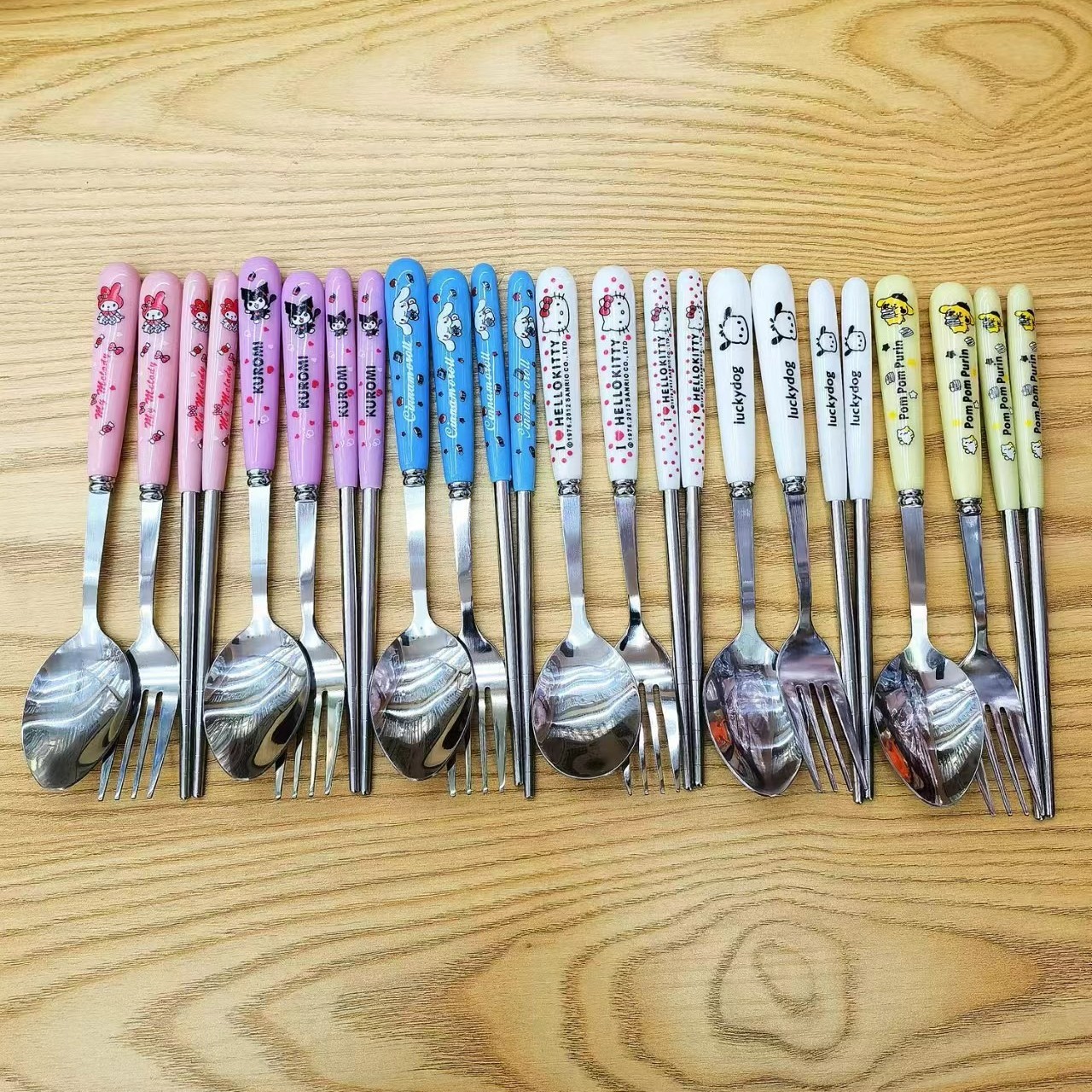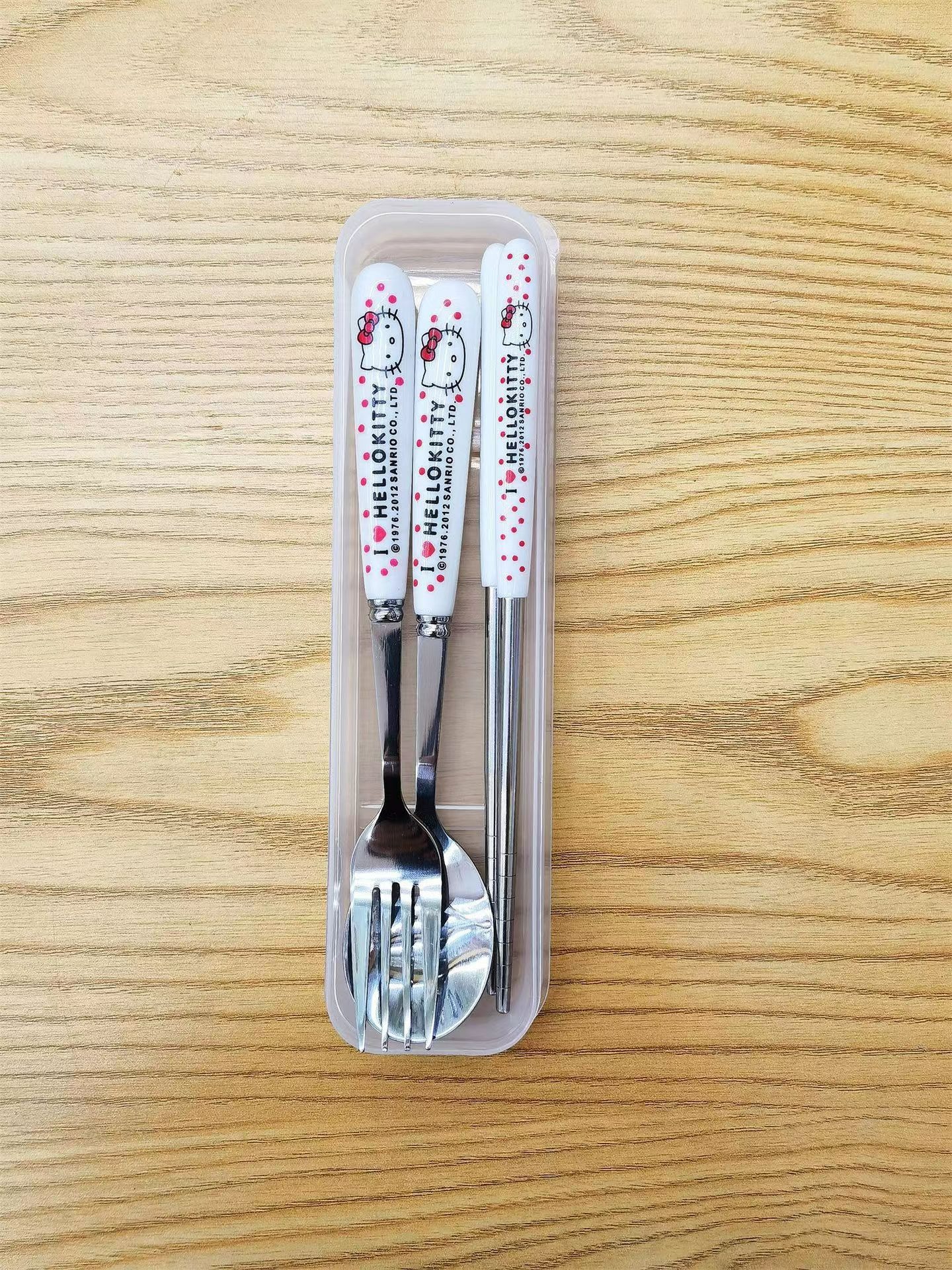 超可爱学生便携三件套不锈钢餐具套装叉子勺子筷子组合野餐便携