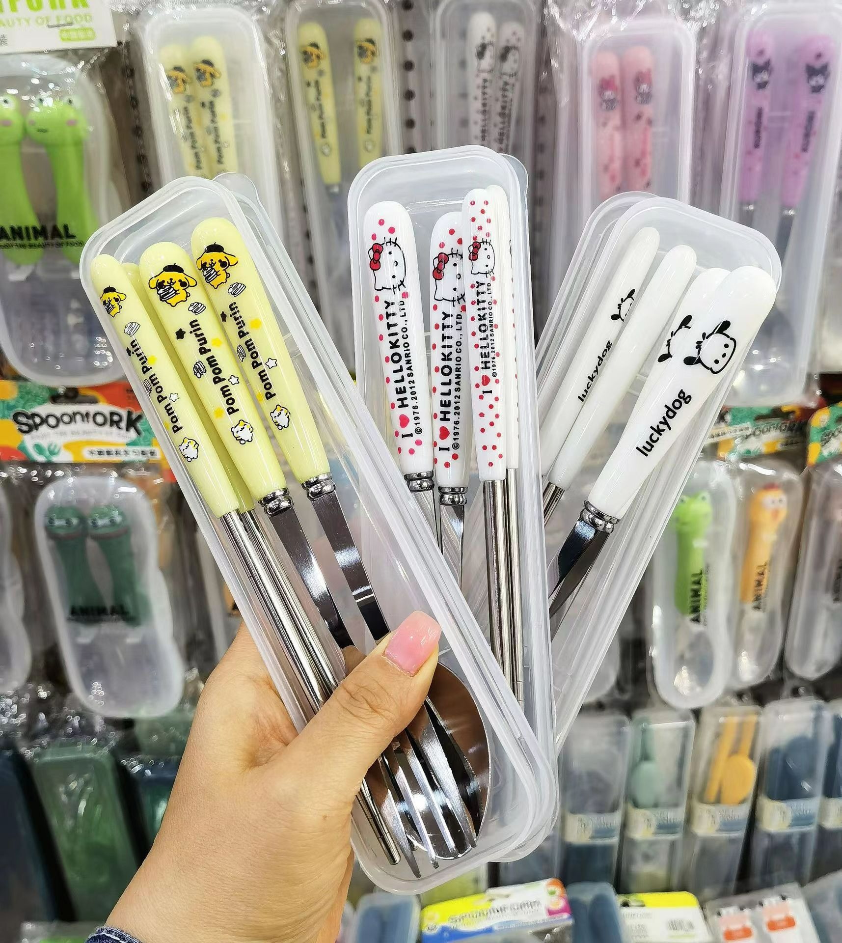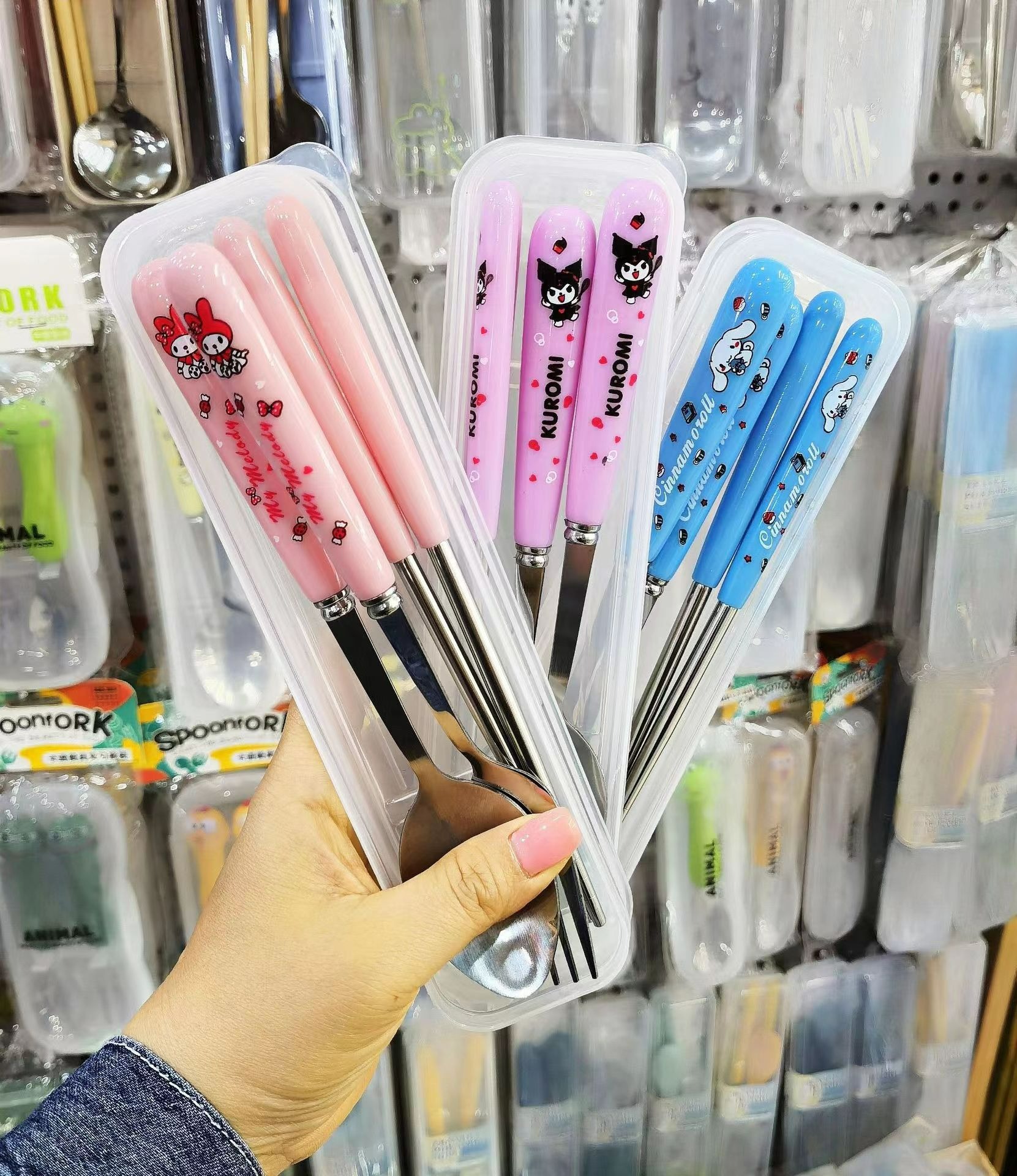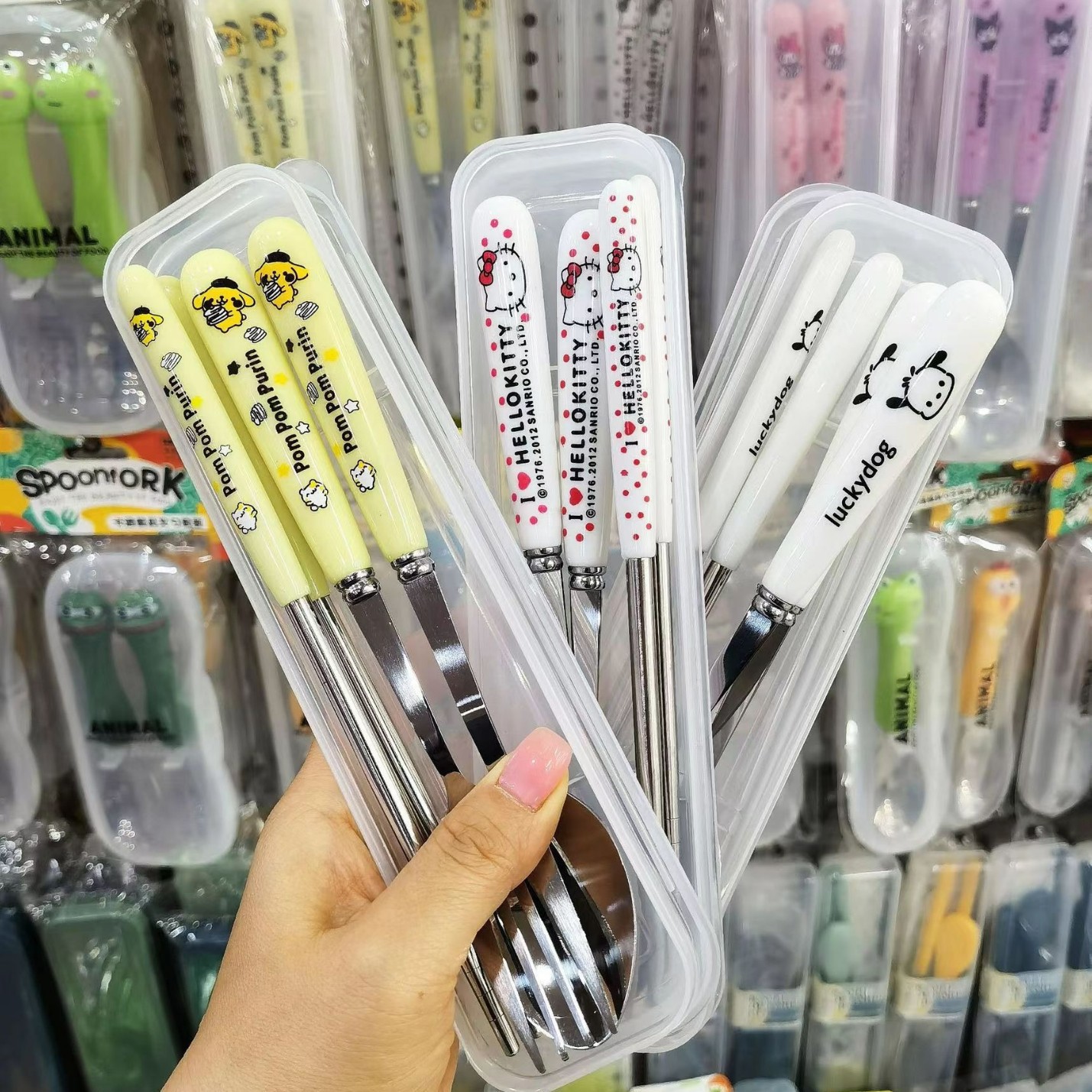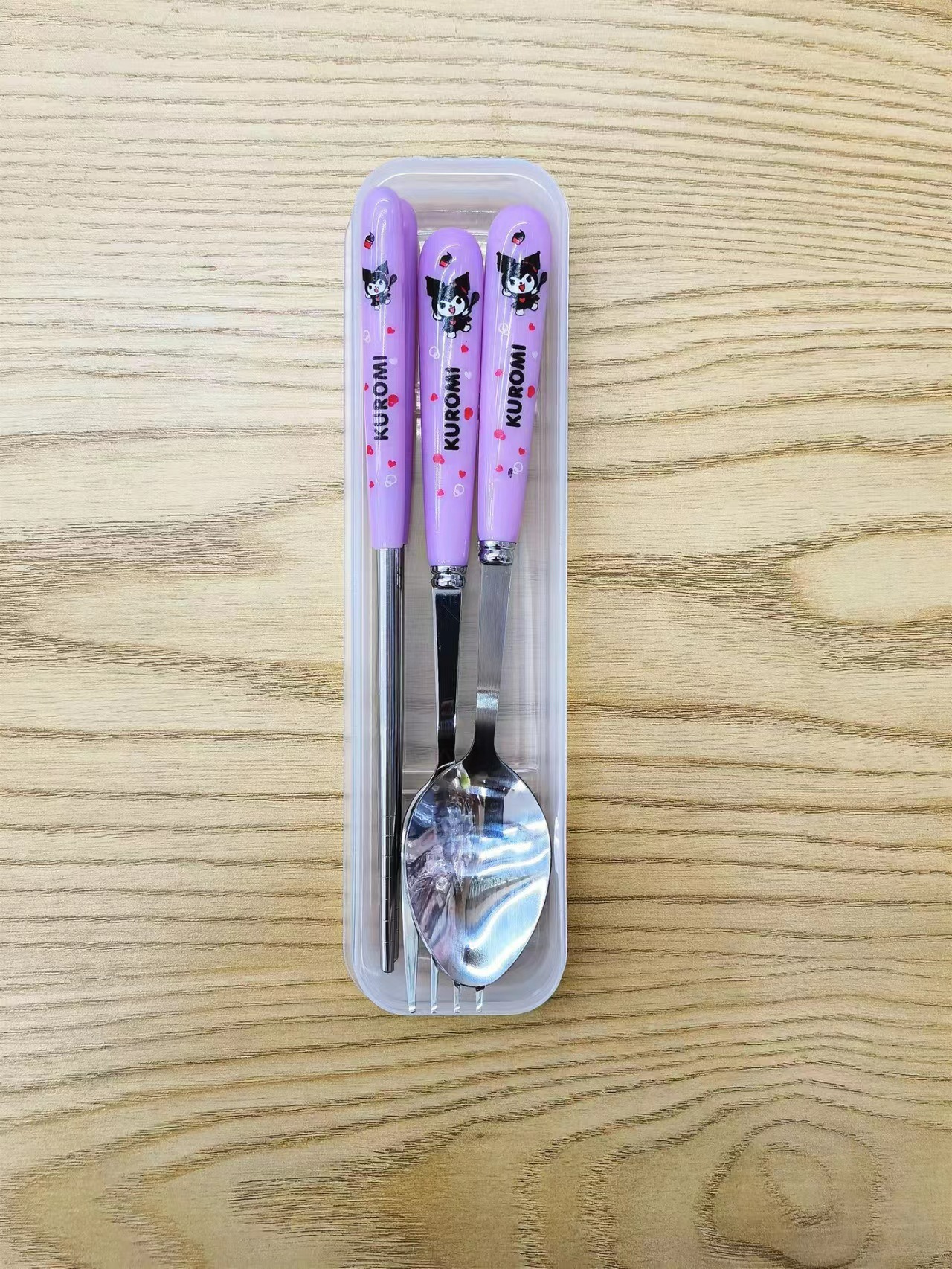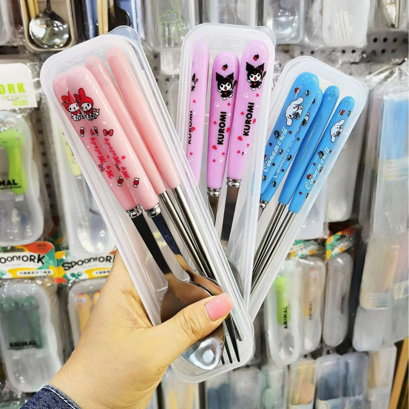 超可爱学生便携三件套不锈钢餐具套装叉子勺子筷子组合野餐便携